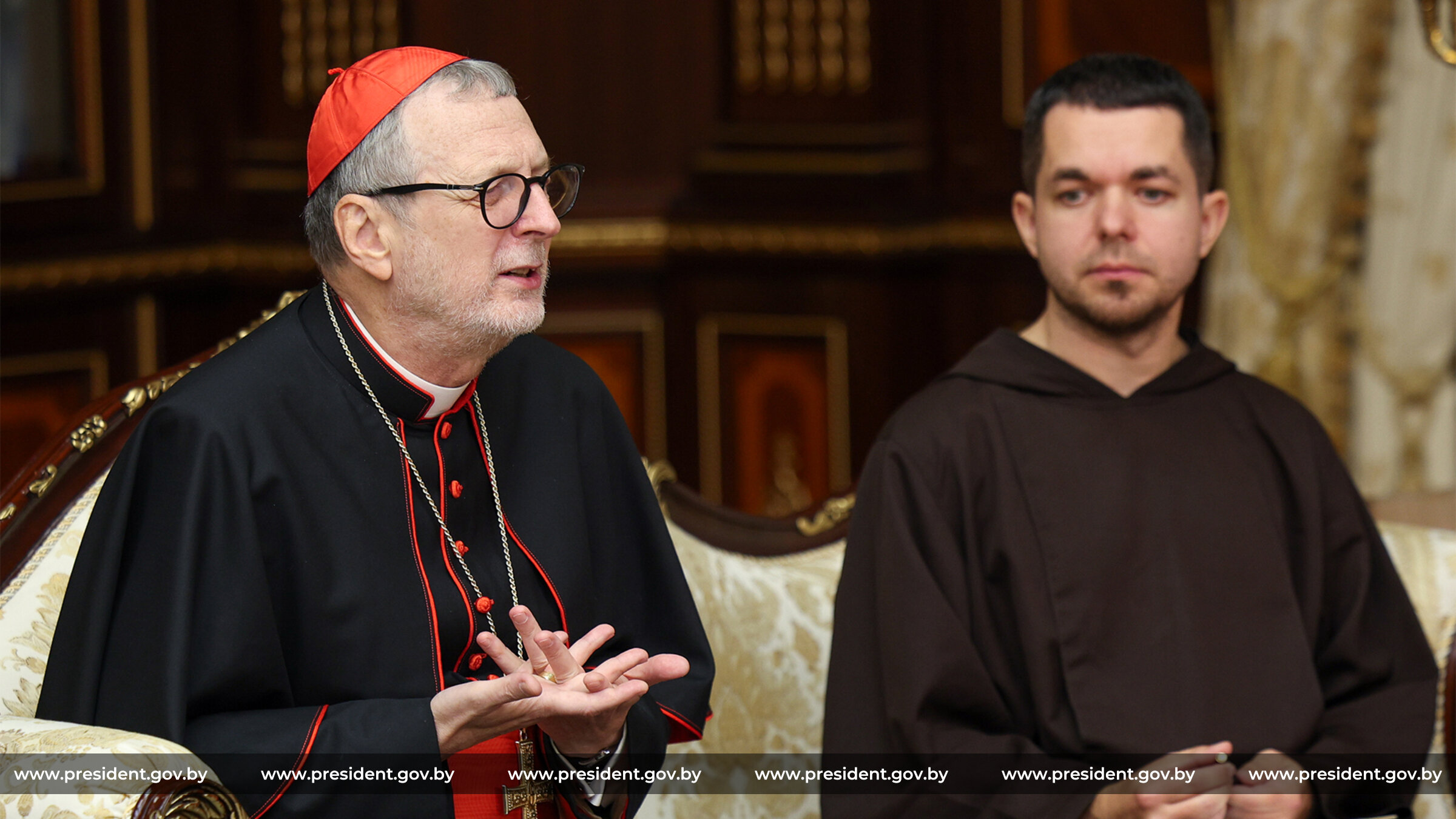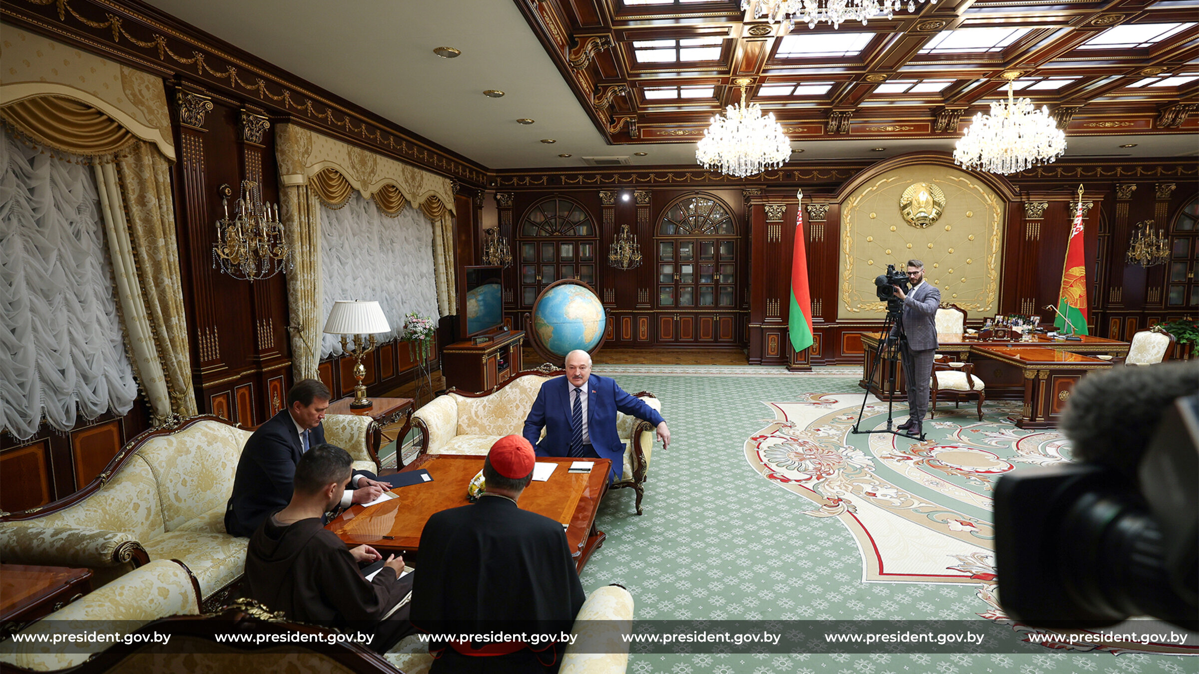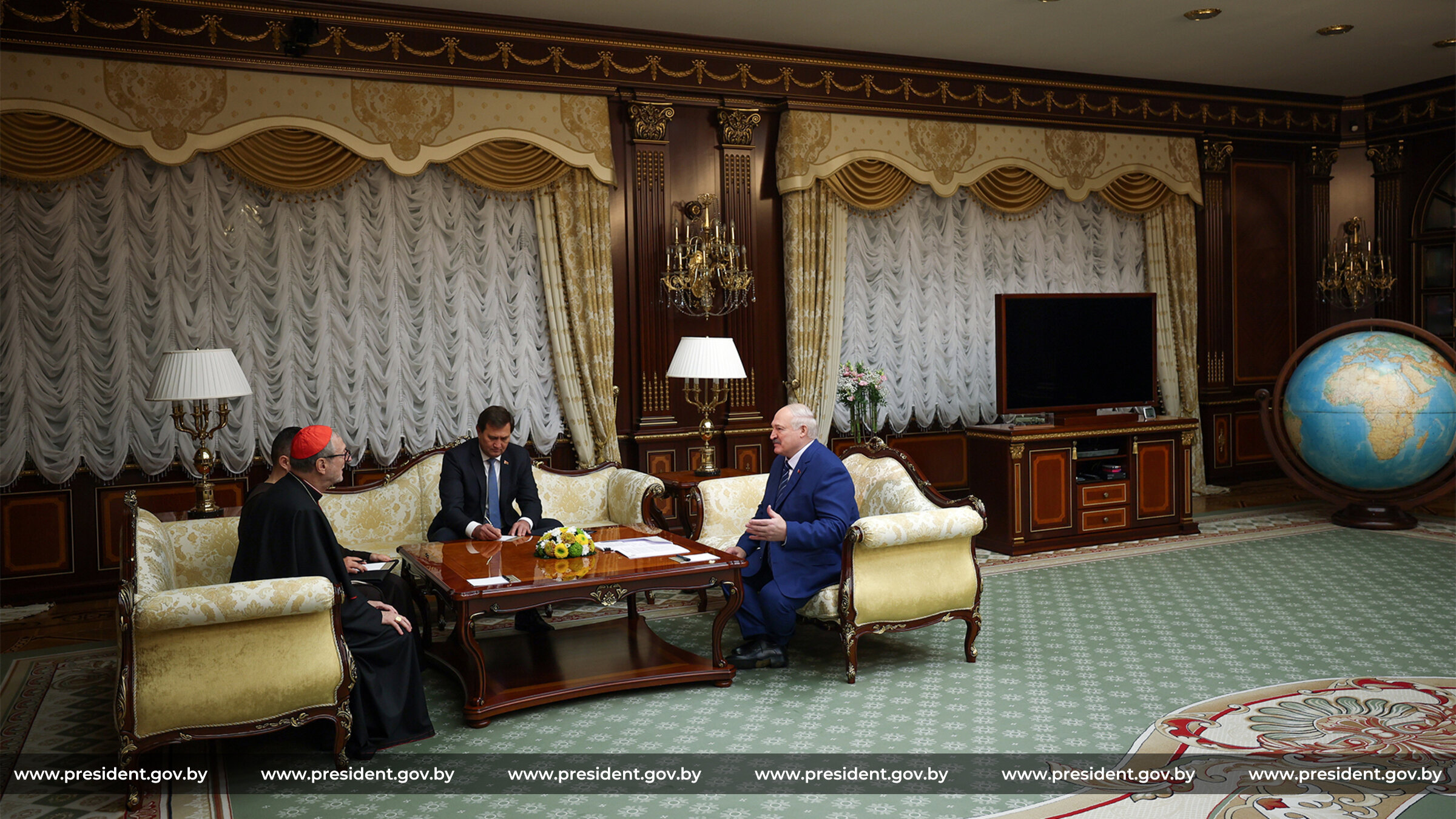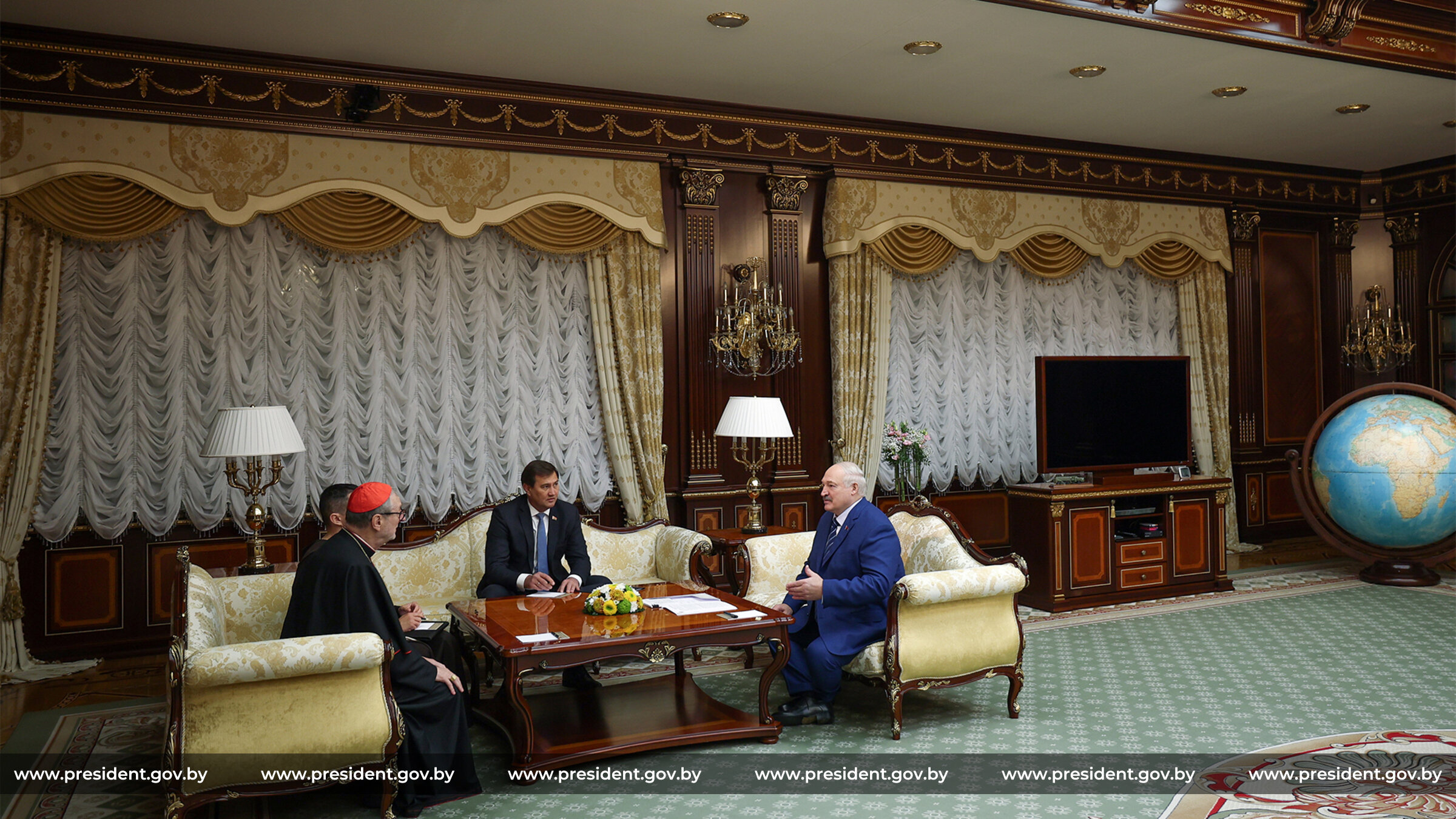 «Я ознакомлен в деталях с вашим визитом. Очень рад, что вы вспомнили Беларусь и вам понравилась Беларусь, понравились наши люди. Все. Не только католики, православные. И другие люди. И даже мусульмане очень хорошо восприняли ваш визит. Это говорит о том, что тот след ваш в Беларуси, извините за тавтологию, не бесследен, — сказал Глава государства. — Поэтому я искренне рад встретиться с вами. Я помню все наши встречи, разговоры, переговоры, обязательства, которые мы выполняем, выполнили или что-то не выполнили — мы сегодня с вами откровенно по-дружески поговорим об этом. Я очень рад встретиться и обсудить все вопросы, которые, возможно, накопились в наших отношениях».