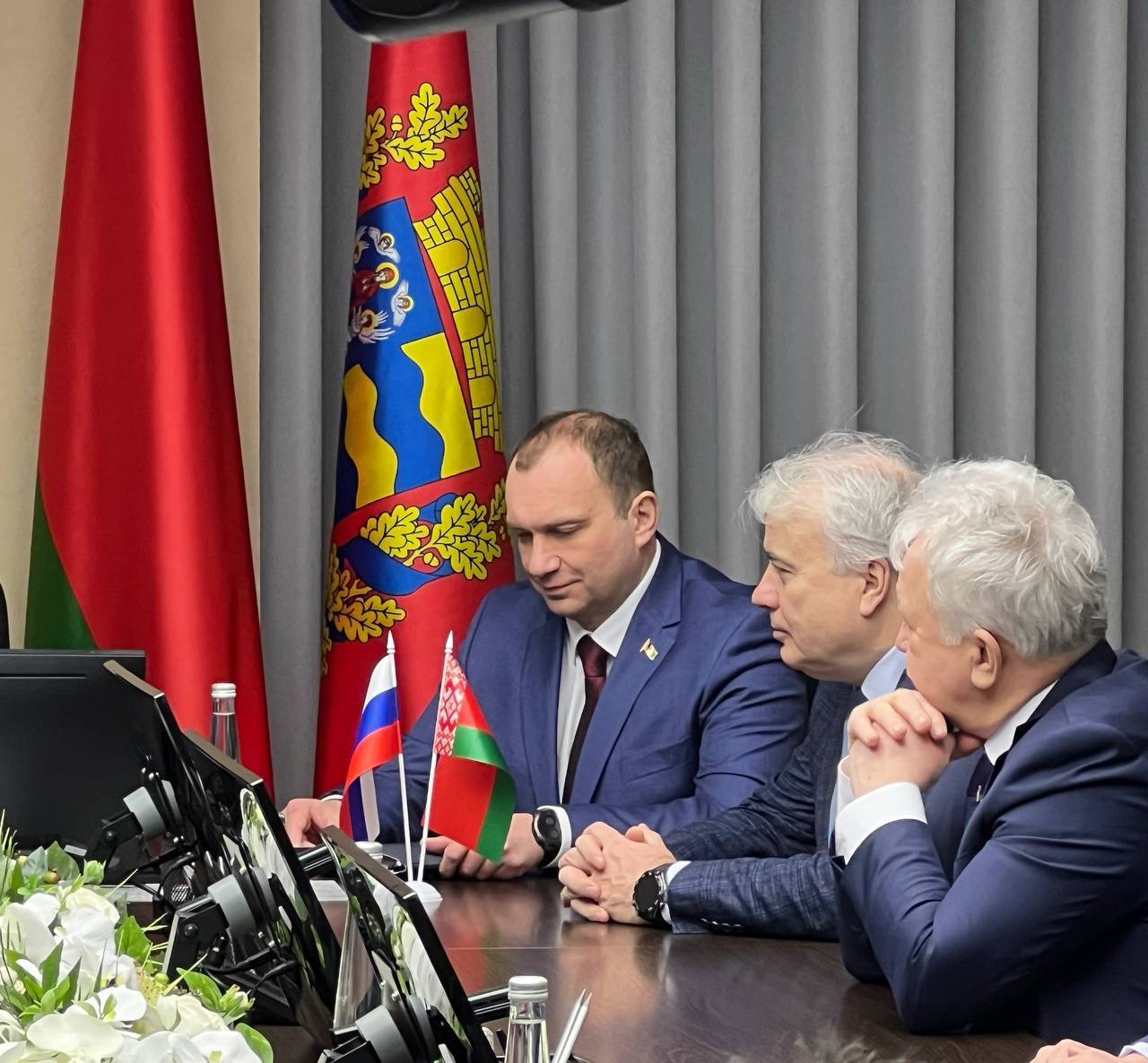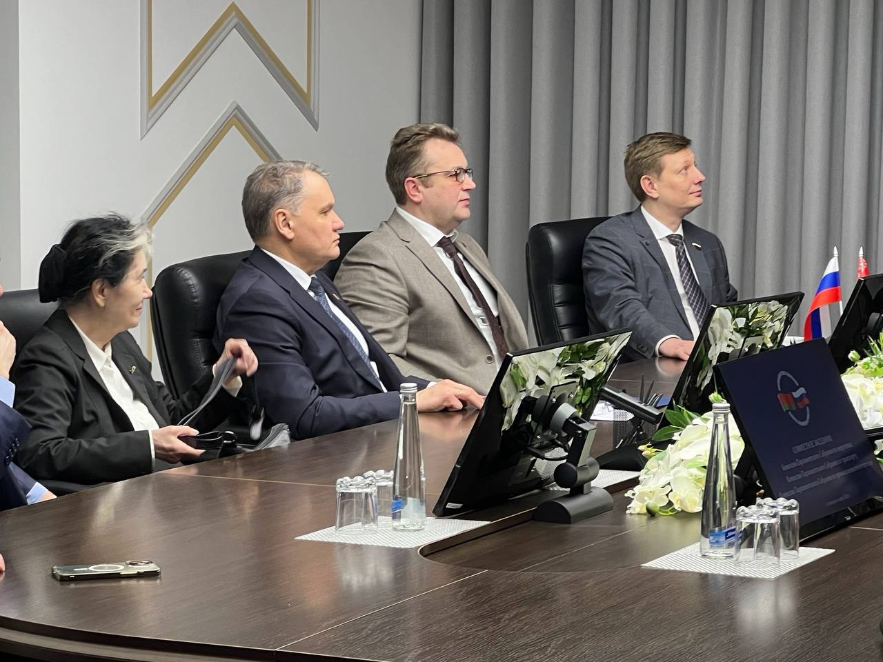 Перед началом мероприятия союзные парламентарии возложили цветы к Мемориальному комплексу «Скорбящая мать» и почтили память защитников Родины минутой молчания.