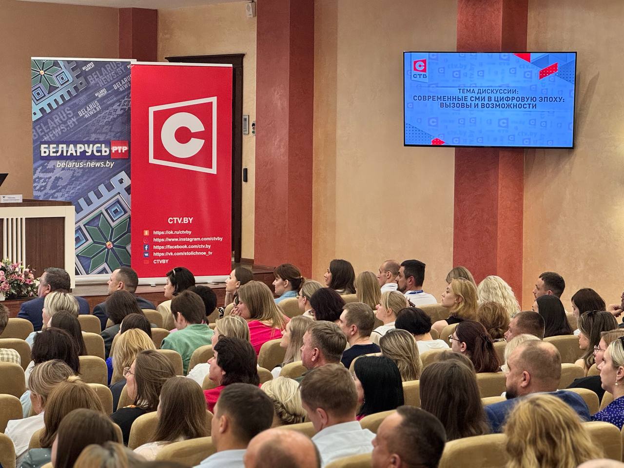Участники V Форума медийного сообщества Беларуси «Медиа сегодня: фокус на правду» принимают участие в панельной дискуссии.