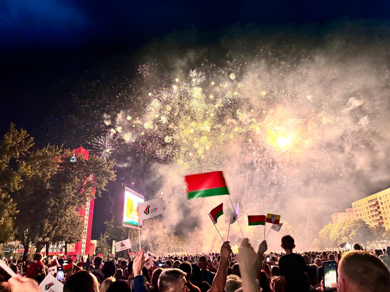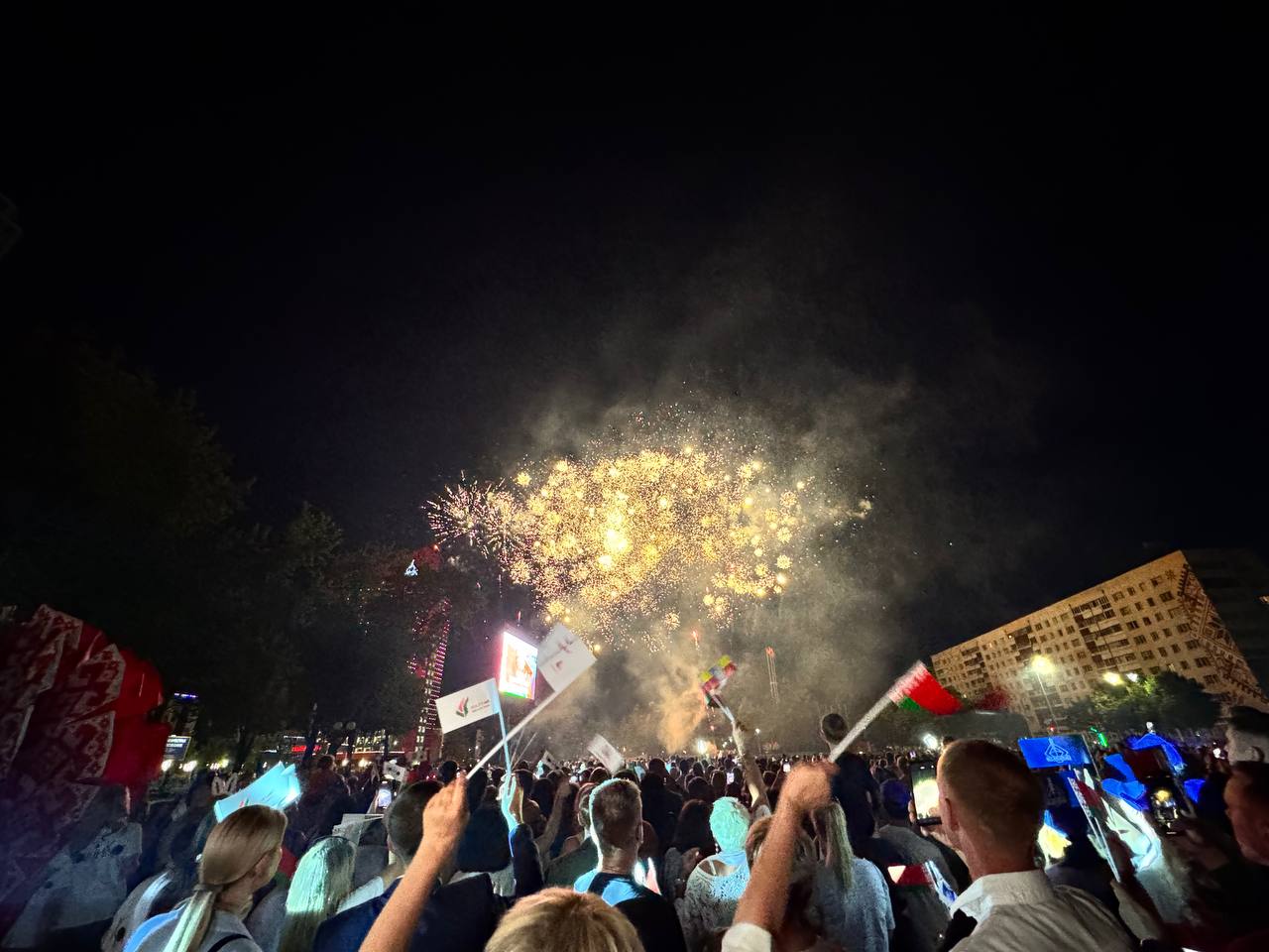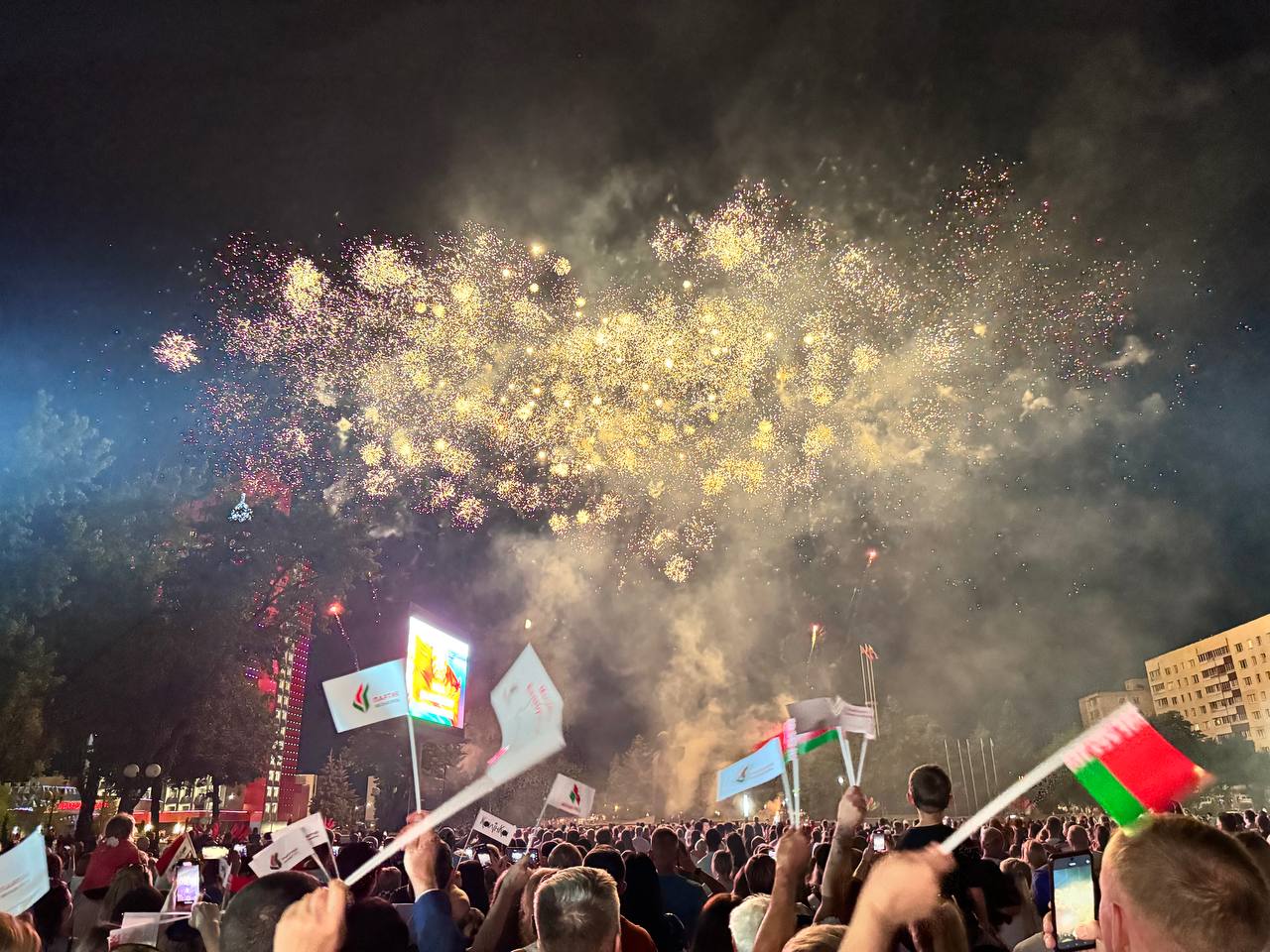 Культурно-патриотическая акция «Споем гимн вместе» и праздничный салют в Солигорске «Мы, беларусы – мірныя людзі, Сэрцам адданыя роднай зямлі, Шчыра сябруем, сілы гартуем. Мы ў працавітай, вольнай сям’і» Завершили этот прекрасный день праздничные залпы салюта! Солигорский телеканал