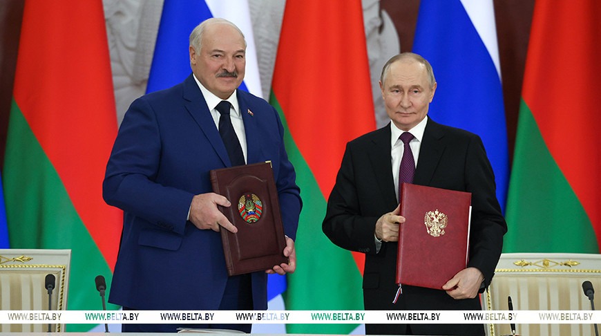 Лидеры стран подтвердили нацеленность на поступательное интеграционное строительство Союзного государства, укрепление его экономического и технологического потенциала, формирование общих пространств в социально-экономической, гуманитарной, оборонной, миграционной, информационной и иных сферах, выравнивание прав и свобод граждан и условий деятельности хозяйствующих субъектов двух стран.