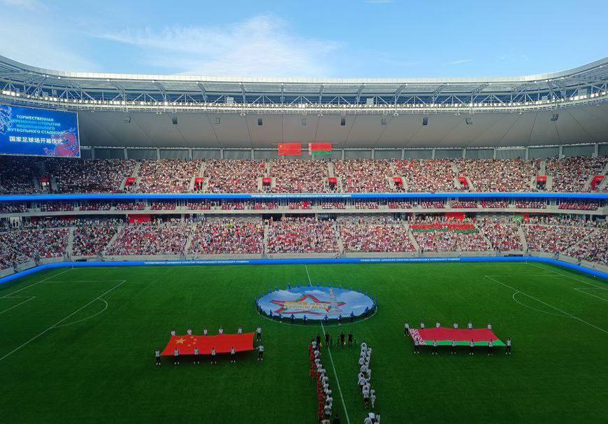 Молодежные сборные Беларуси и Китая сыграли вничью – 1:1 – в первом матче на Национальном футбольном стадионе в Минске В торжественной церемонии открытия арены принял участие Президент Беларуси Александр Лукашенко. 10 июня на новом стадионе сыграют национальные сборные Беларуси и России. Фото – БЕЛТА и Пул Первого
