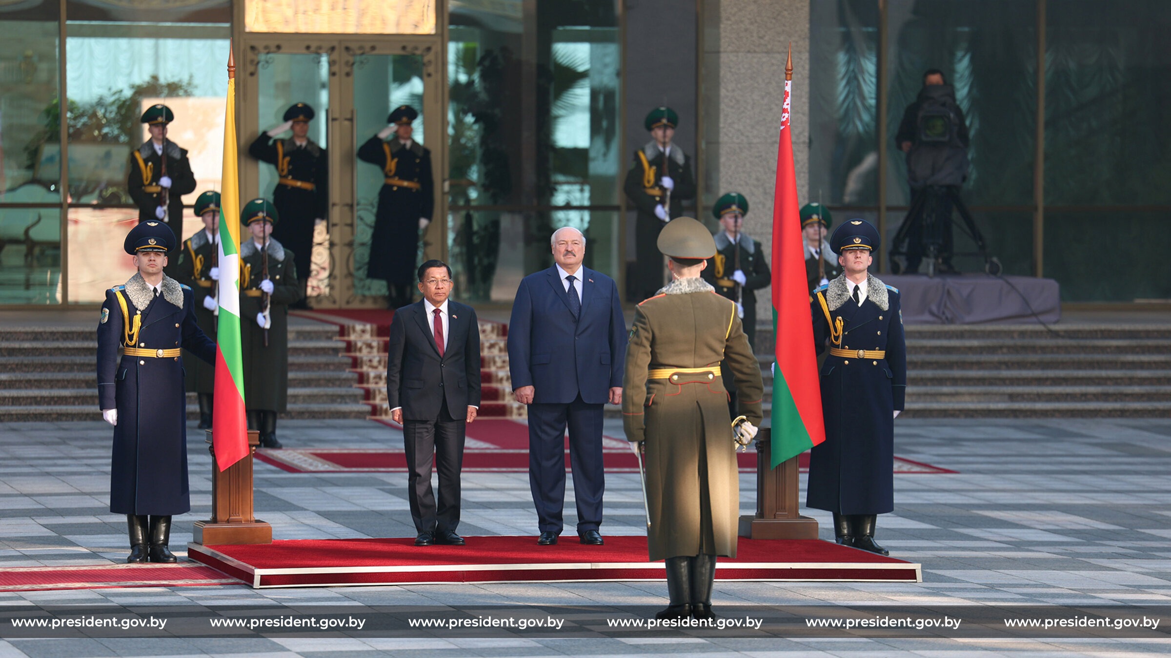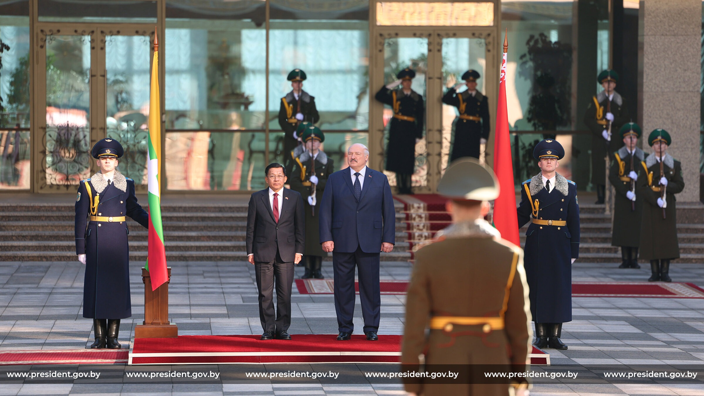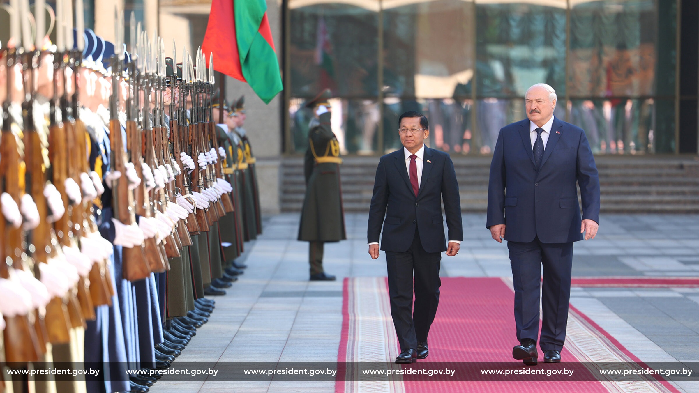 Общение глав государств началось с церемонии официальной встречи. Затем Александр Лукашенко и Мин Аун Хлайн провели переговоры в узком и расширенном составах.