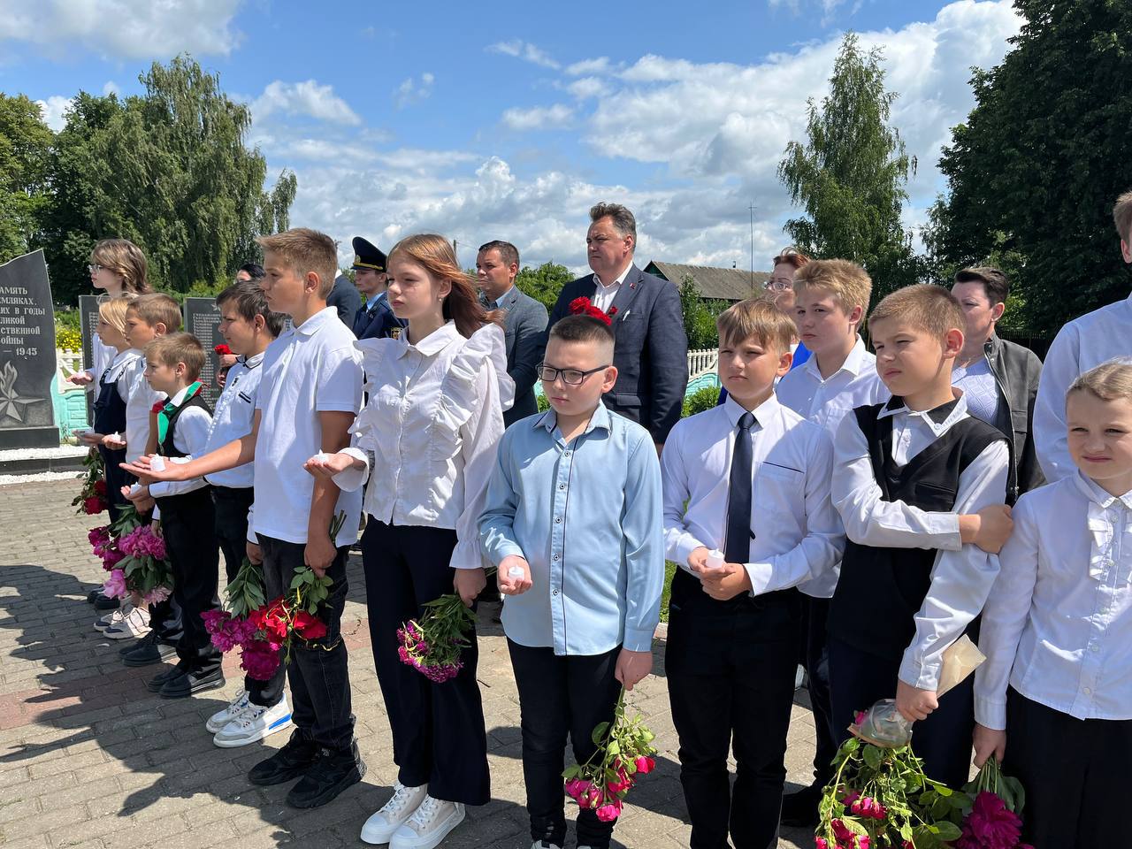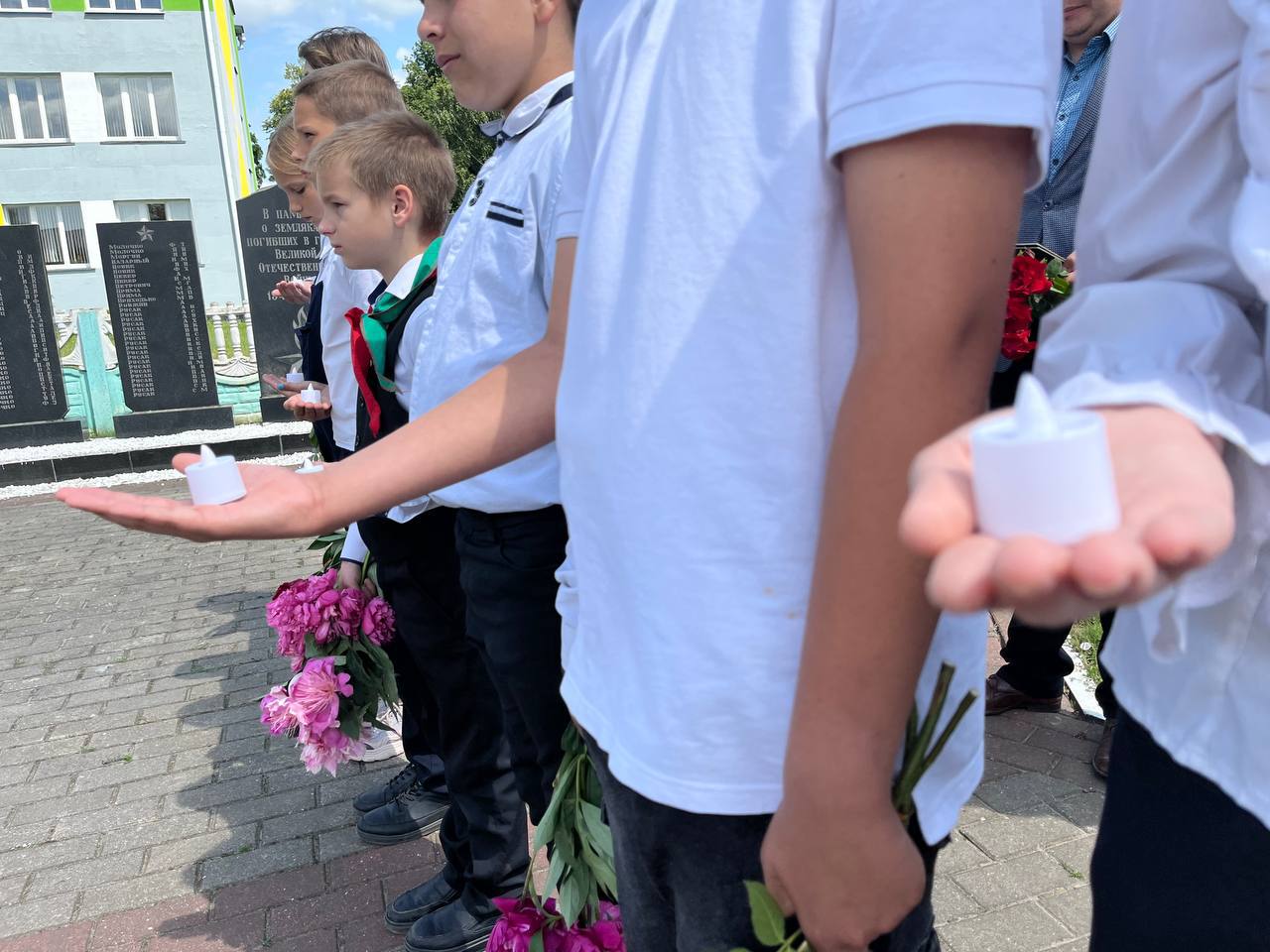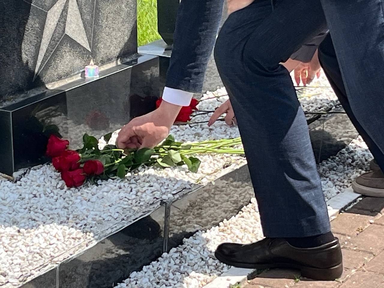 Память погибших почтили минутой молчания, зажгли символичные свечи и возложили цветы к мемориалу.