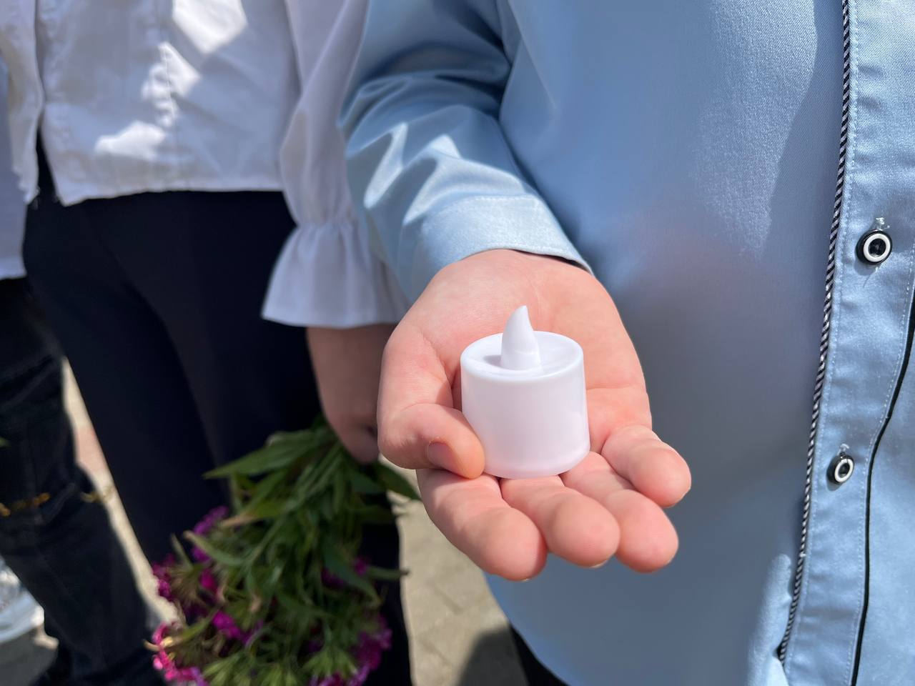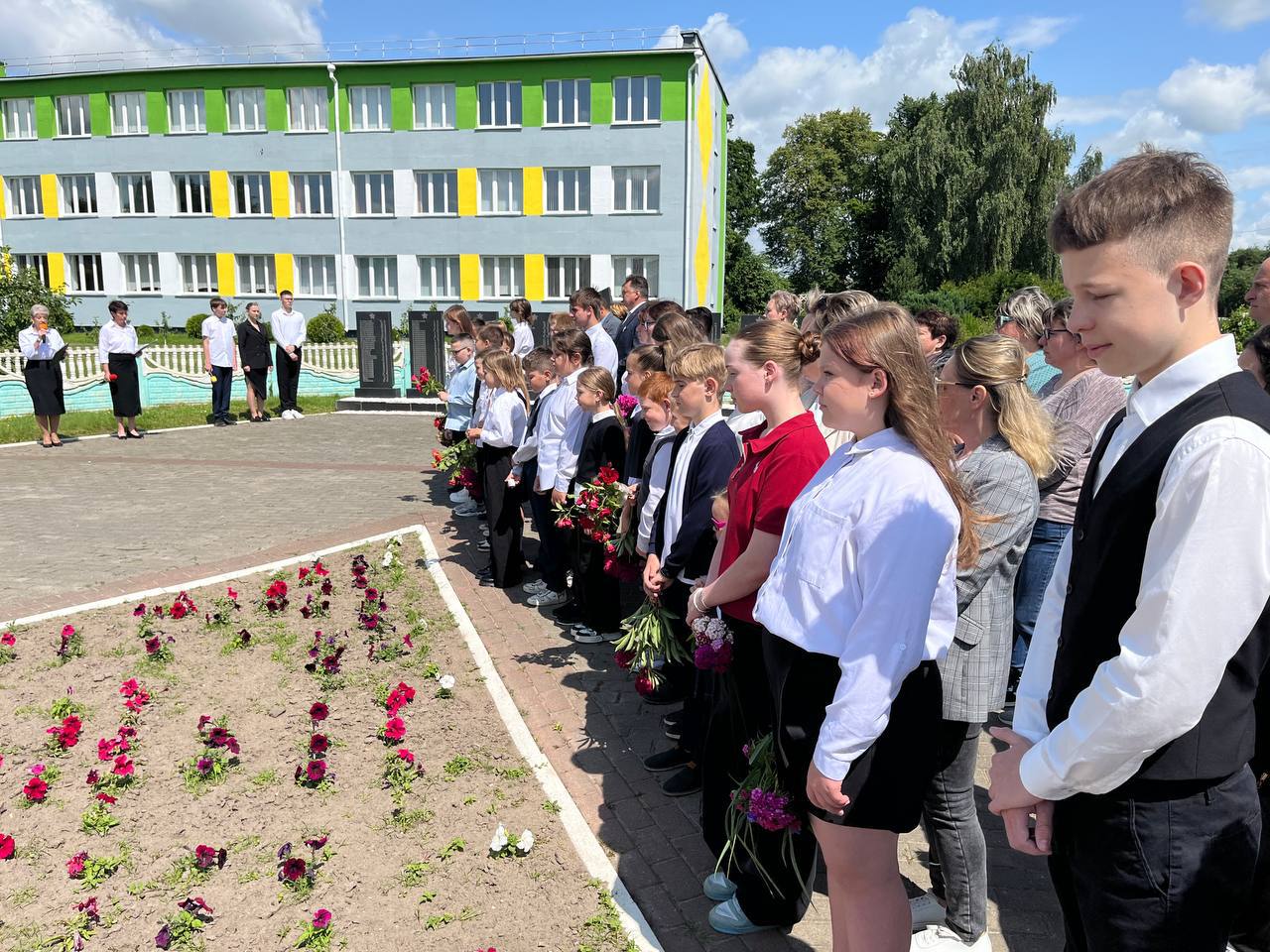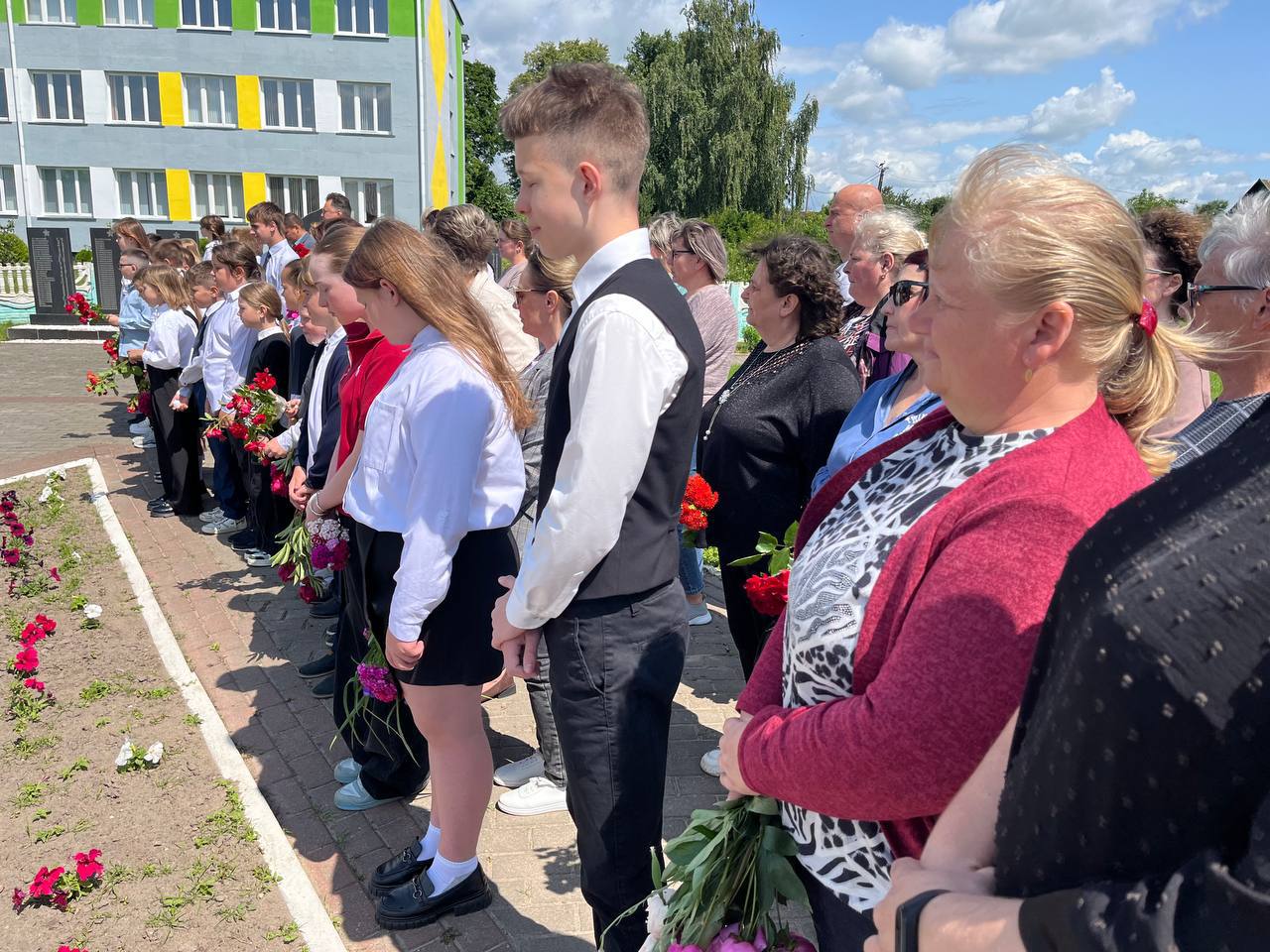 Память погибших почтили минутой молчания, зажгли символичные свечи и возложили цветы к мемориалу.