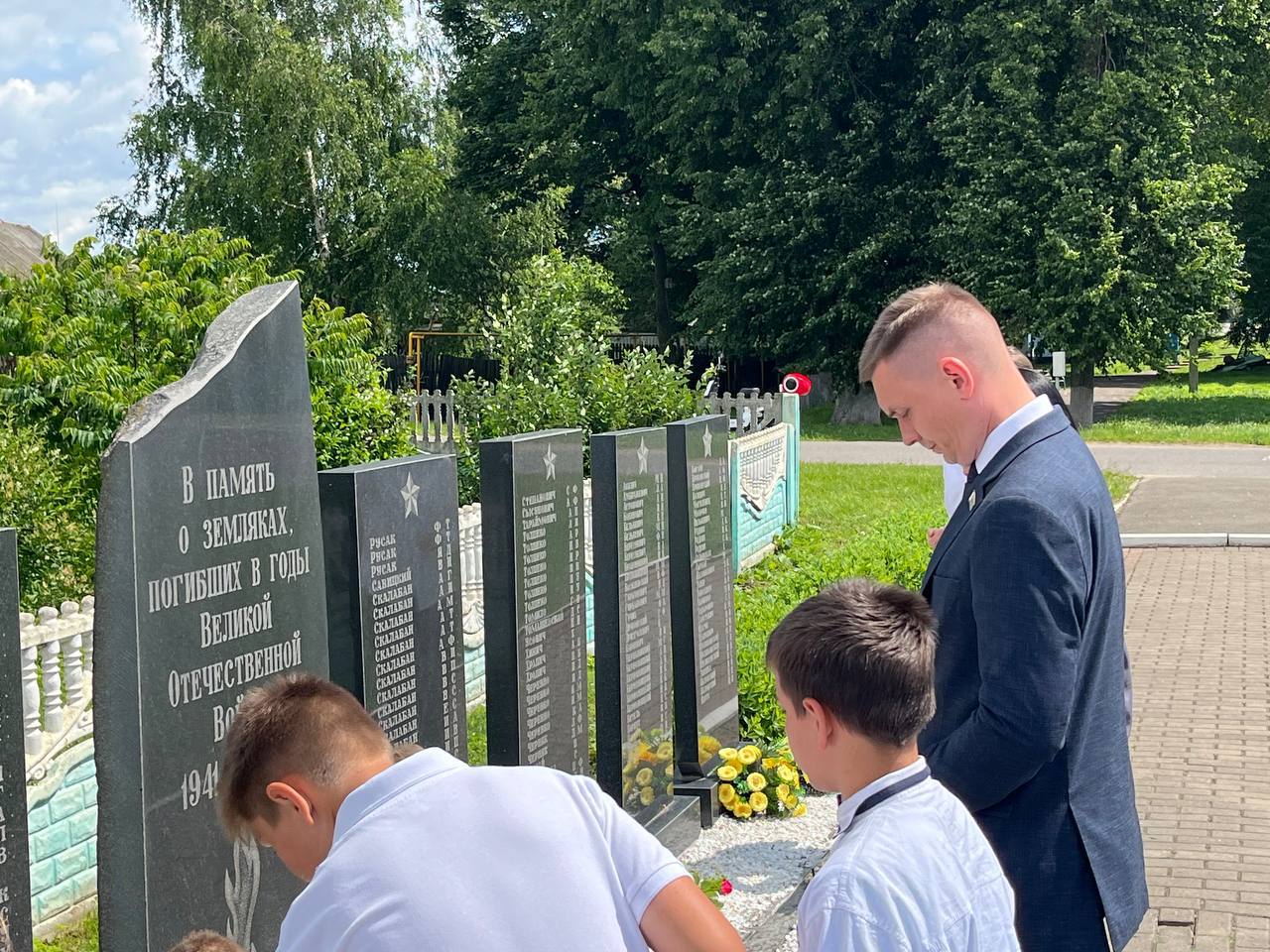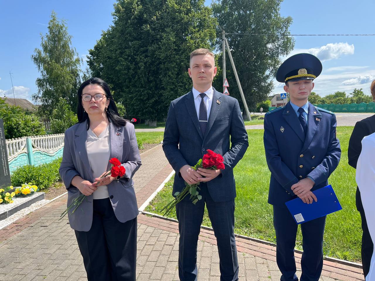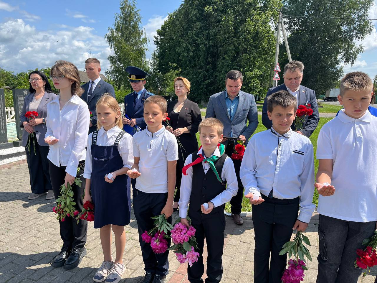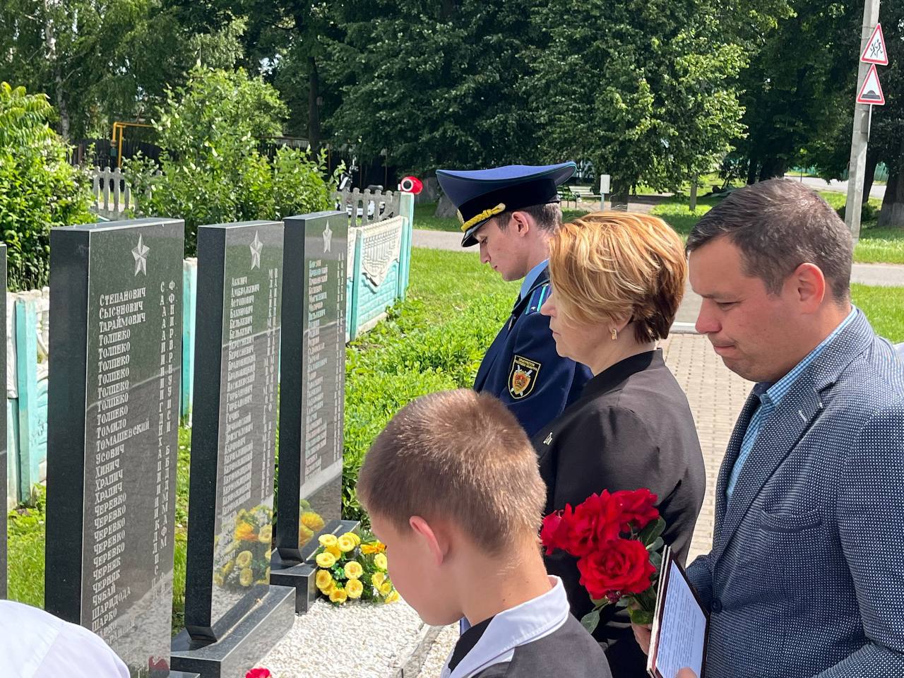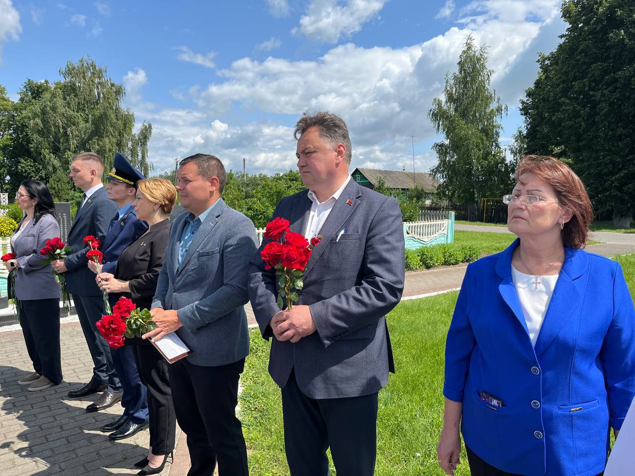 В агрогородке Кривичи сегодня прошел митинг, посвященный трагической дате начала Великой Отечественной Войны. Отдать дань памяти у мемориала погибшим землякам собрались жители населенного пункта и почетные гости — первый заместитель председателя Солигорского райисполкома Никита Реут, начальник отдела идеологической работы, культуры и по делам молодежи Татьяна Кирбай, заместитель прокурора Солигорского района Александр Романовский, председатель Краснодворского сельсовета Дмитрий Климчук.