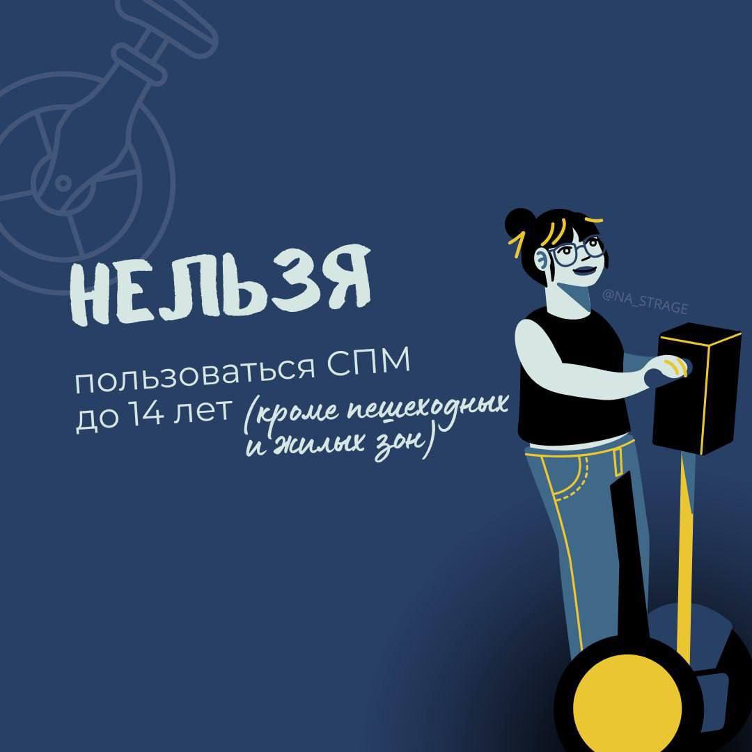- Лица младше 14 лет не должны использовать СПМ, за исключением пешеходных и жилых зон.