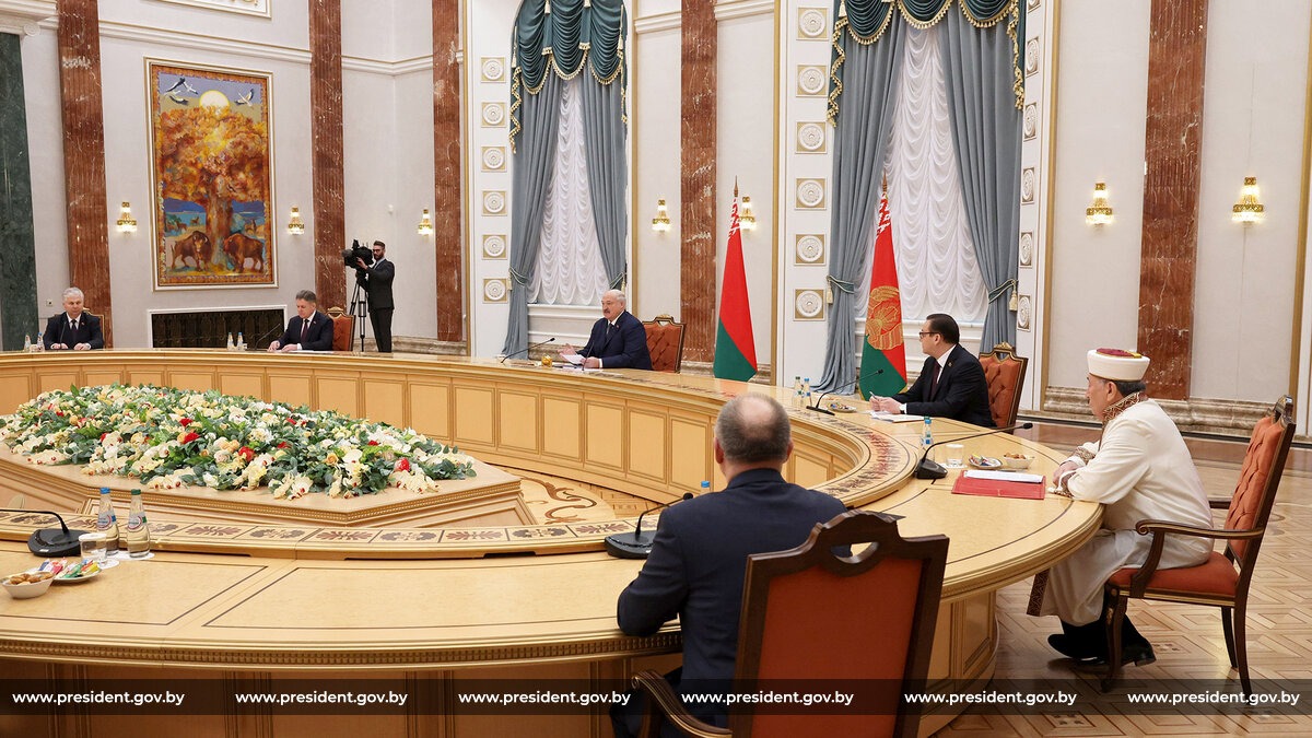 «У меня с нашими мусульманами в Беларуси очень добрые отношения, они никогда не подводили ни власть, ни меня. Честно говоря, я благодарен вам за такую позицию. Вы всегда ее занимали и никогда не шатались ни влево, ни вправо. Я это очень ценю. Беларусь вроде бы не мусульманская страна, а позиция мусульман у нас серьезная. Спасибо вам огромное за такое отношение к Беларуси, и помните (это касается всех наших конфессий), что это ваша земля — и татар, и башкир, и других, которые приехали к нам. Не там ваша земля. Там, может быть, ваши корни, и ваша душа там. Но земля ваша здесь. И я уверен, что у многих и душа здесь. Поэтому я вам очень благодарен за такую позицию», — заявил Президент.