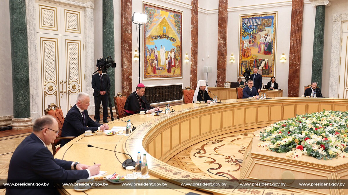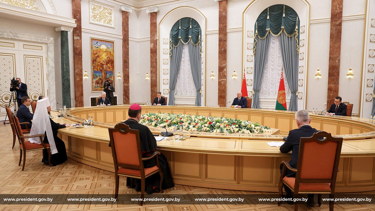 Александр Лукашенко добавил, что на встрече нет закрытых тем и он готов обсудить все волнующие священнослужителей вопросы. «Государство неизменно занимает конструктивную позицию — и будет занимать — в вопросах, касающихся деятельности наших религиозных организаций. Но духовная жизнь — сфера очень тонкая. Поэтому, если вы видите, что какая-то тема требует дополнительного внимания, корректировки, я готов выслушать ваши предложения. Ведь все, что мы делаем, мы делаем ради мира и нашего духовного единства», — заявил белорусский лидер.