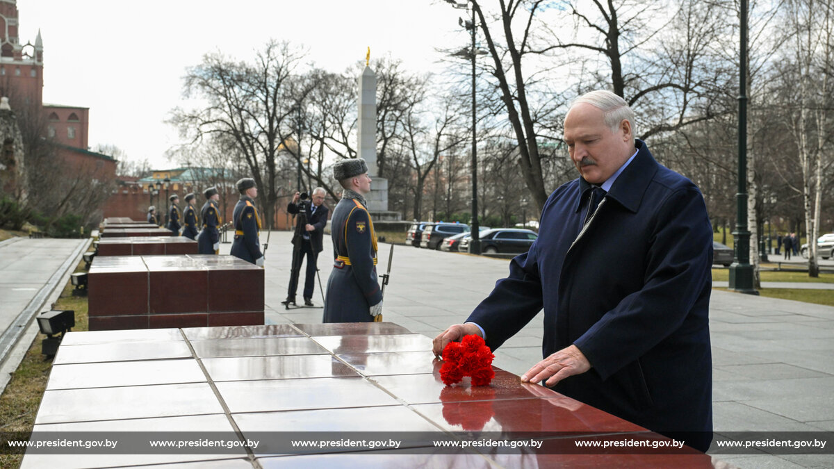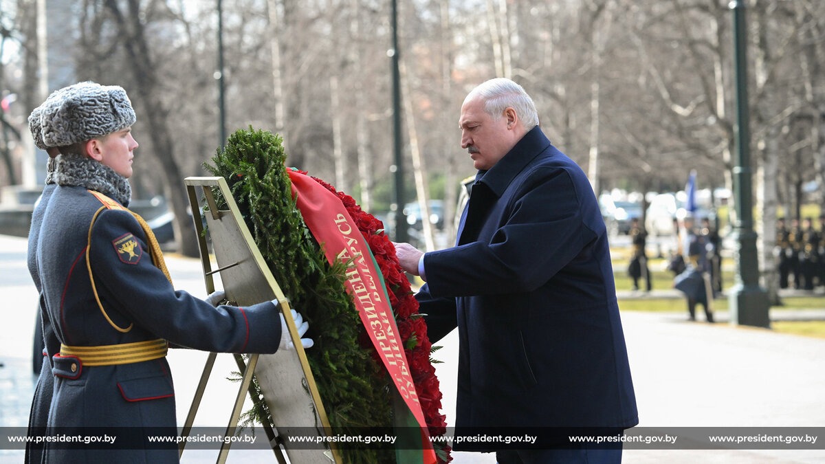 Президент Беларуси Александр Лукашенко 14 марта в ходе официального визита в Россию возложил венок к Могиле Неизвестного Солдата.