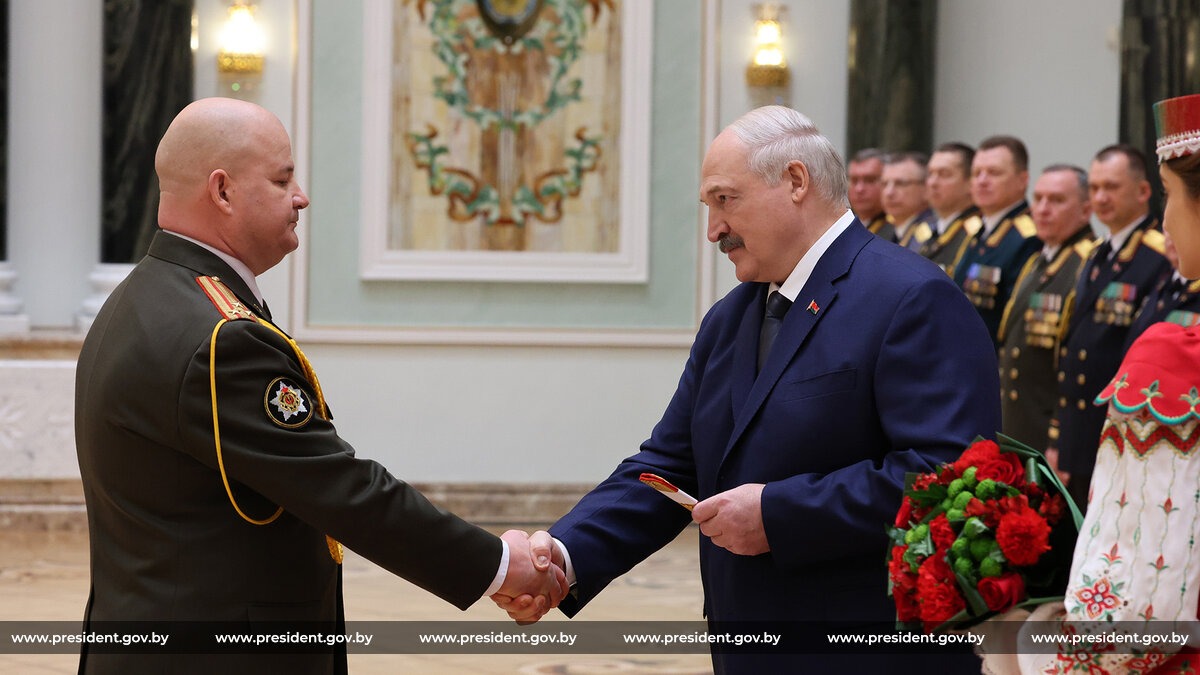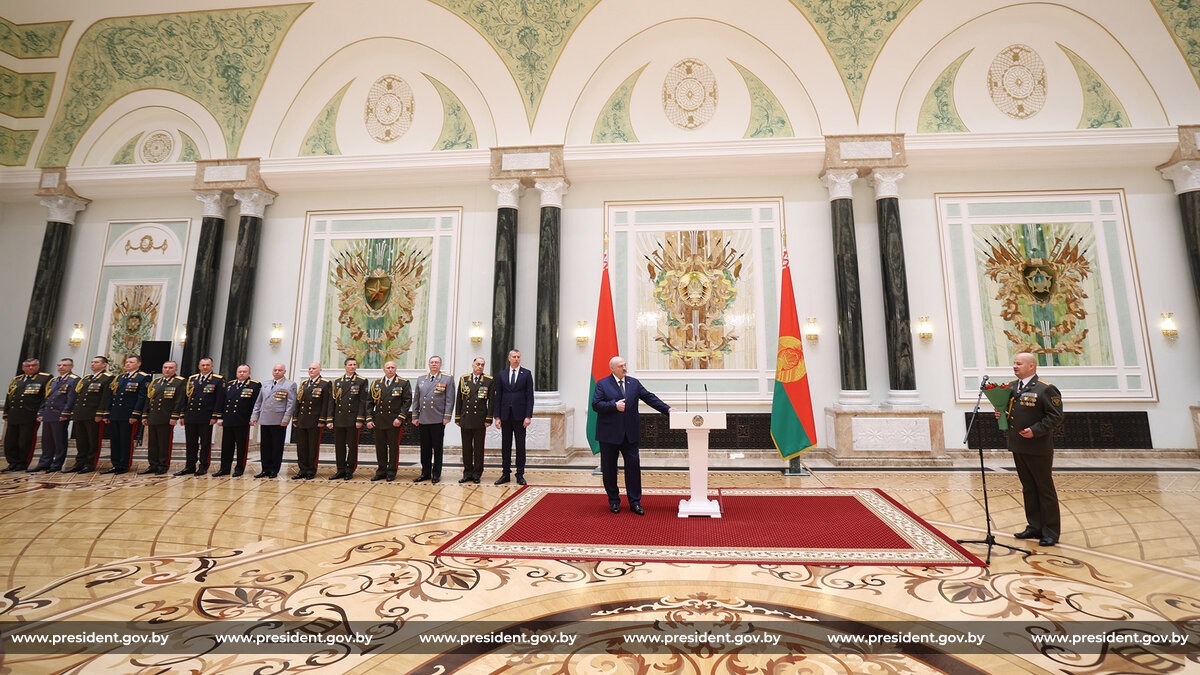 Александр Лукашенко поздравил всех награжденных офицеров и новоиспеченных генералов с высокой оценкой ратного труда и личного вклада в дело защиты Родины, а также поблагодарил за службу. «Убежден, что в биографии каждого из вас будут новые успехи и награды», — сказал он.