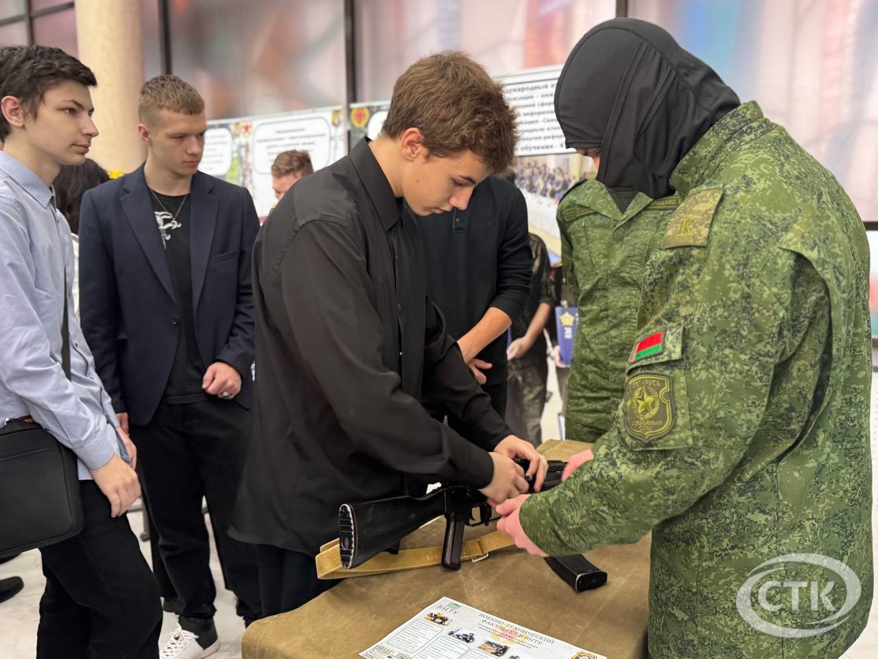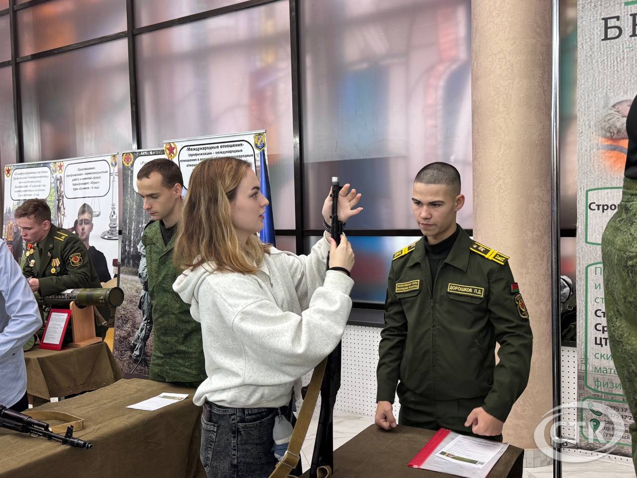 В профориентационном мероприятии принимают участие представители Министерства обороны Республики Беларусь, военного комиссариата Солигорского и Любанского районов, преподаватели и студенты учреждений высшего образования военного профиля г. Минска.