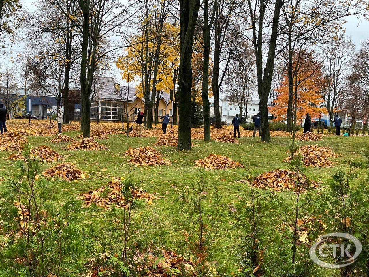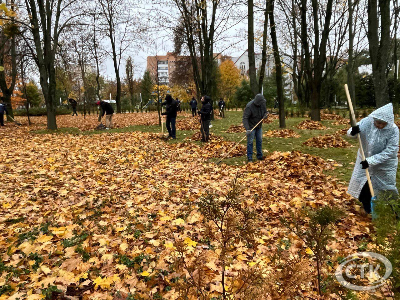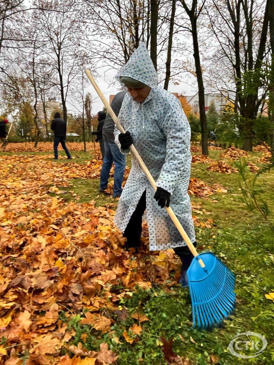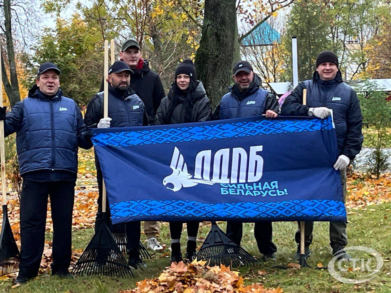 Республиканский субботник проходит в Солигорске. Работы ведутся в сквере «Молодость» Работники предприятий и организаций выходят в парки и на улицы города, чтобы сделать их чище и красивее. В сквере «Молодость» жители Солигорска убирают опавшую листву. Активно и с хорошим настроением работают члены партии ЛДПБ. Дождь не помеха наведению порядка.