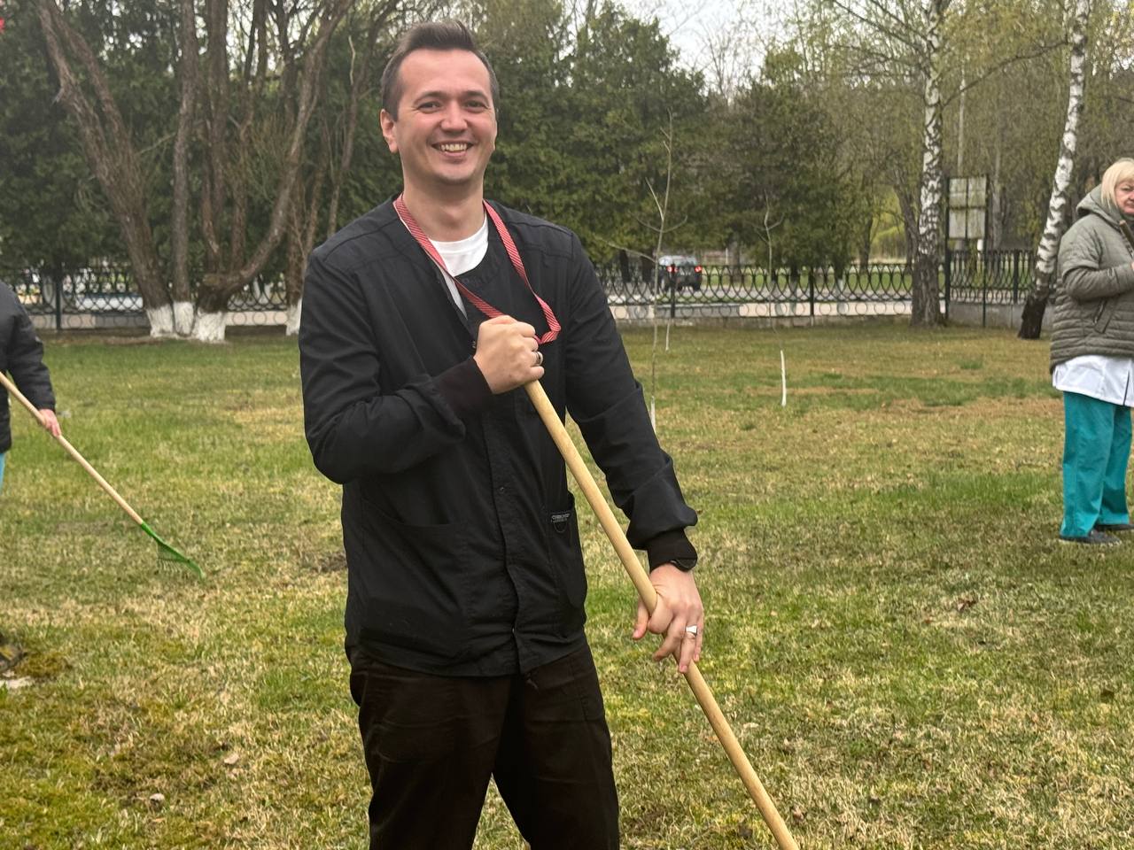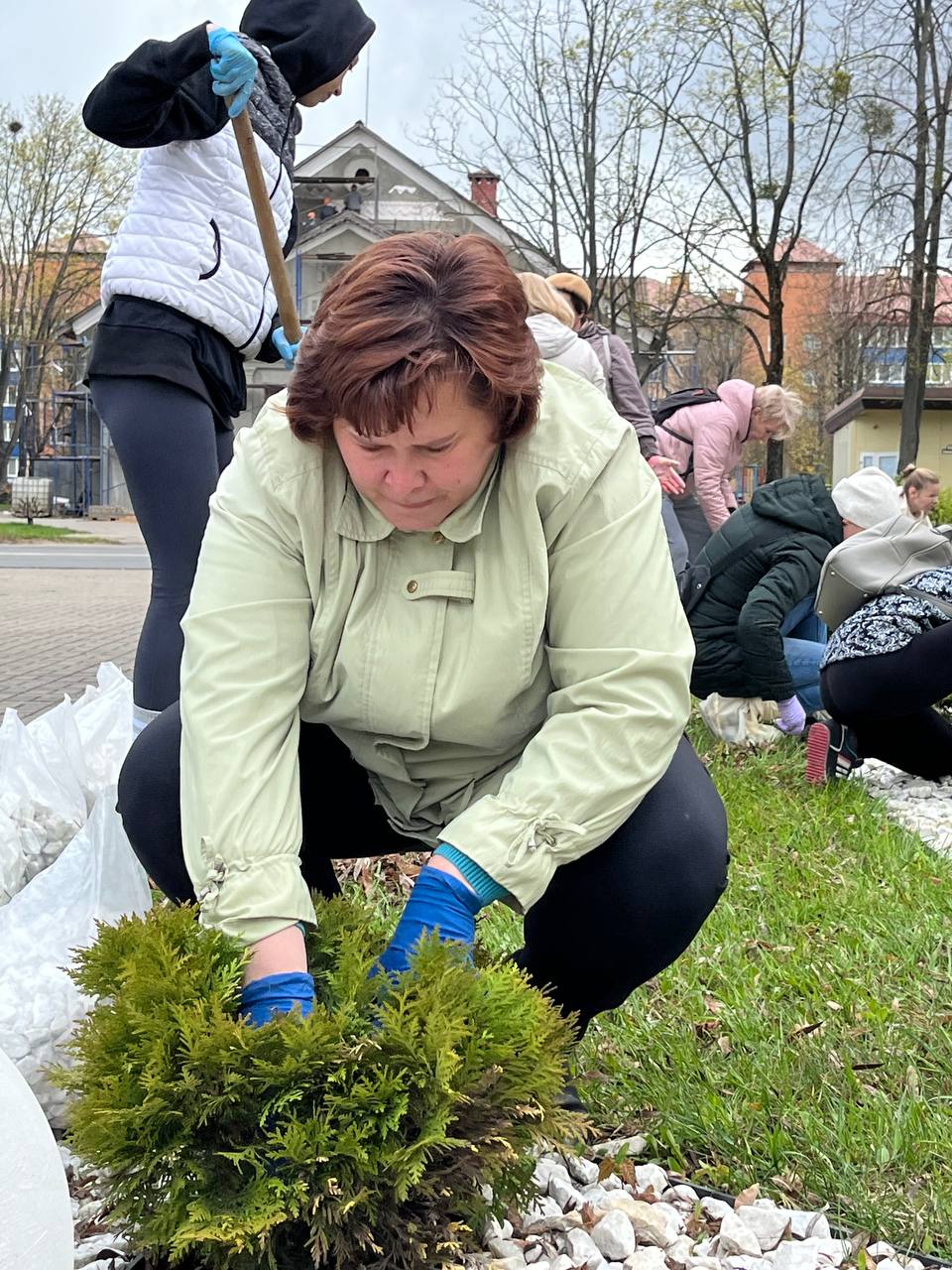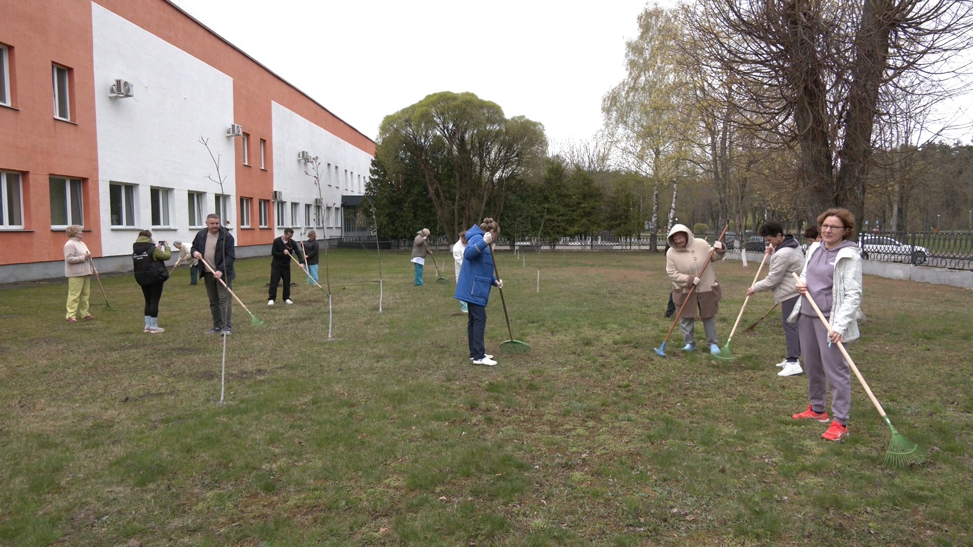 Порядка сотни работников Солигорской центральной районной больницы во главе с главврачом вышли сегодня привести в порядок территорию больничного городка.