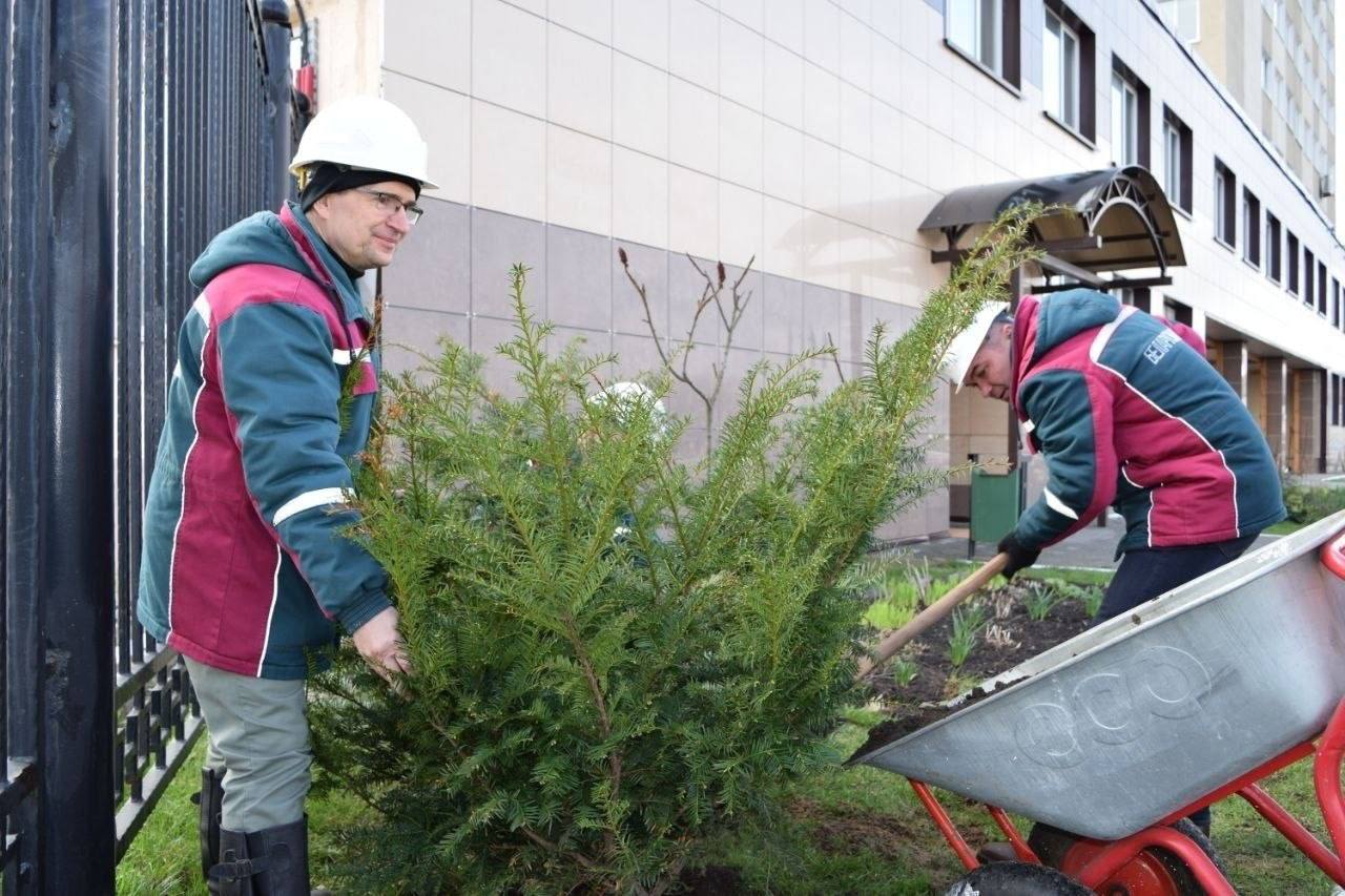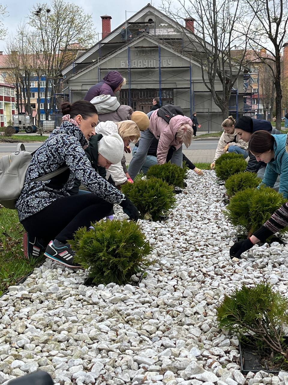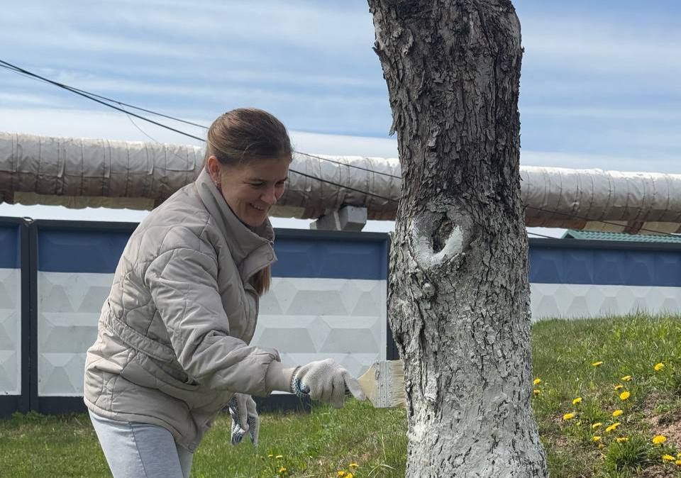 Порядка сотни работников Солигорской центральной районной больницы во главе с главврачом вышли сегодня привести в порядок территорию больничного городка.