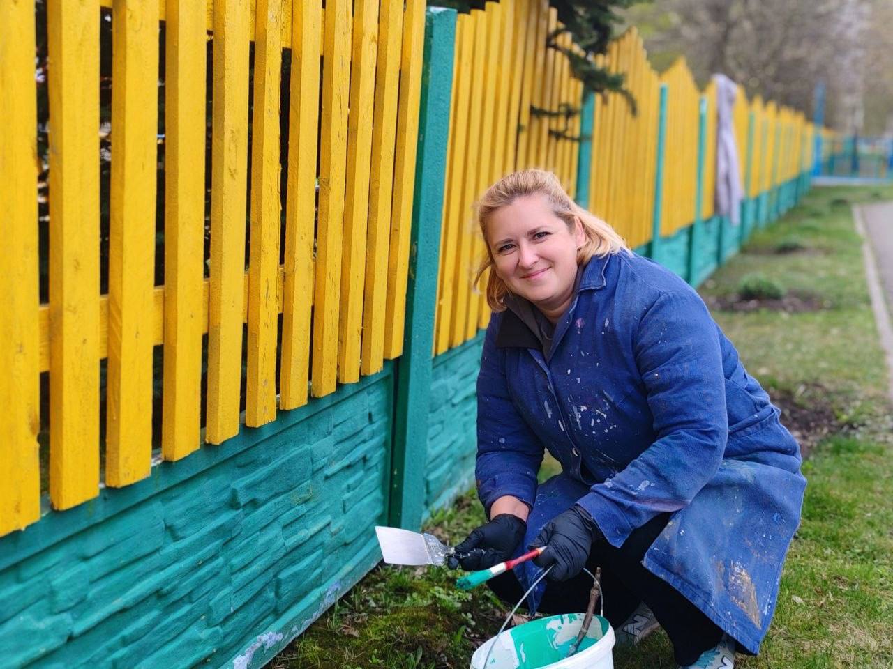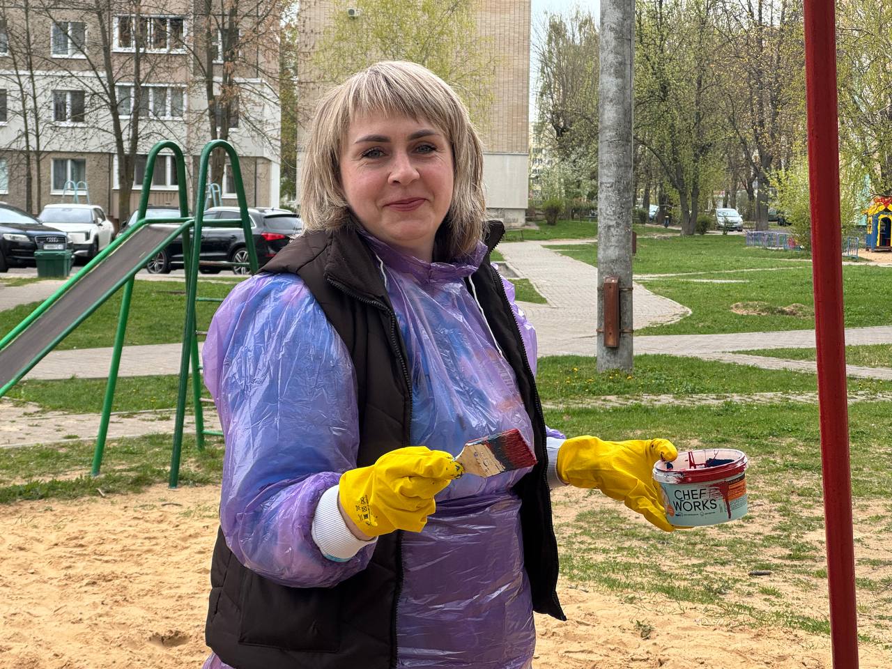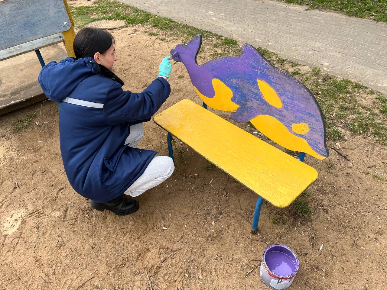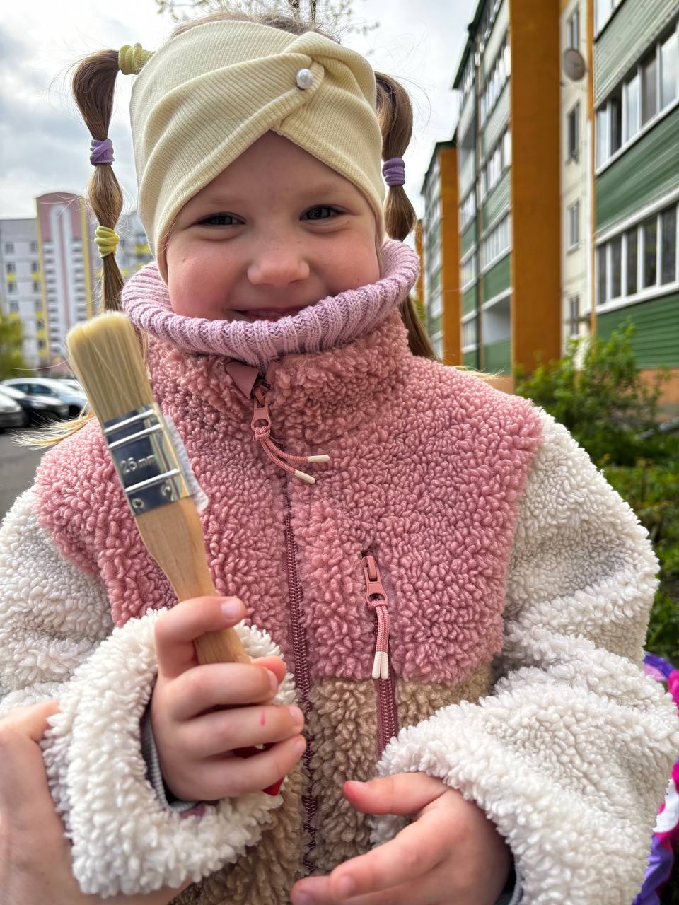 К процессу с энтузиазмом подключилась маленькая 5-летняя помощница и даже поучаствовала в покраске скамеек.На этой территории работают порядка 30 работников ЖКХ «Комплекс».