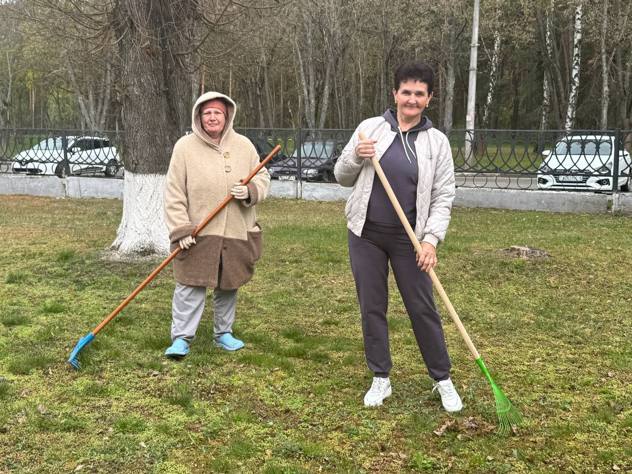 Общественные организации, профсоюзы, работники ЖКХ наводят в порядок на территории парка, сгребают листву, красят скамейки и урны, белят деревья, чистят и подсыпают клумбы, подкармливают туи.