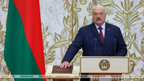 Затем был исполнен Государственный гимн Беларуси, после чего Президент подписал акт о принесении Присяги. Председатель ЦИК вручил Александру Лукашенко удостоверение Президента Республики Беларусь.