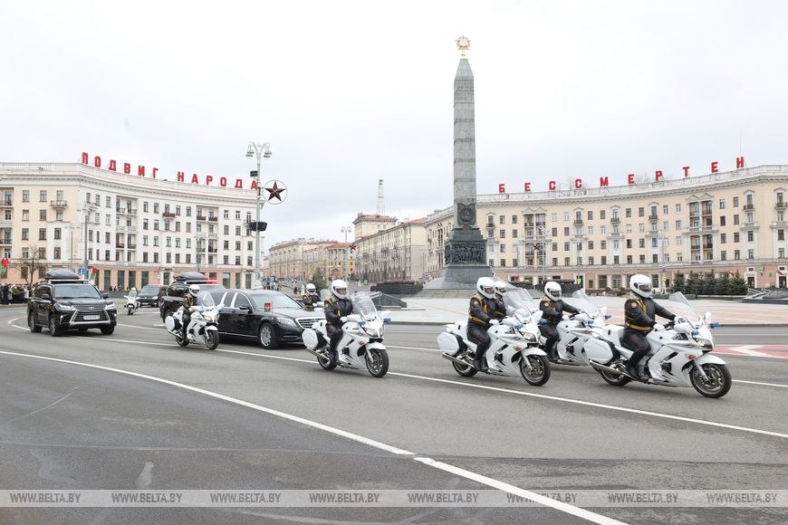 На церемонию были приглашены более 1100 человек. Символично, что маршрут движения кортежа Президента в сопровождении почетного эскорта мотоциклистов пролегал по двум главным столичным проспектам — Независимости и Победителей.