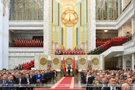 Александр Лукашенко год назад вступил в должность Президента Беларуси. Церемония инаугурации состоялась в Зале торжественных церемоний — самом большом во Дворце Независимости.