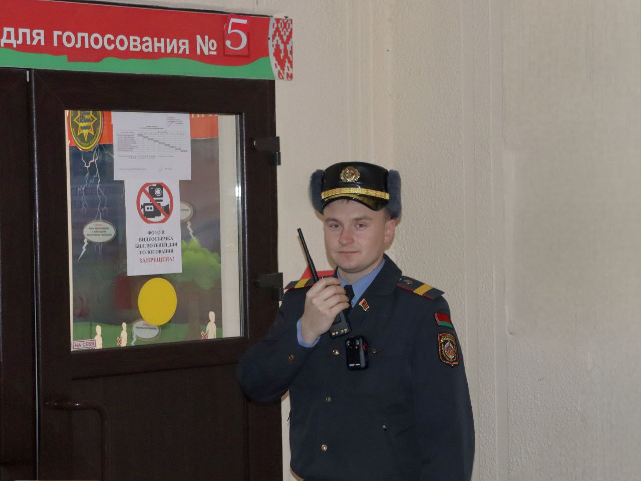 С 20 января сотрудники милиции Минской области перешли на усиленный режим несения службы. Все без исключения избирательные участки оборудованы системами видеонаблюдения, кнопками тревожной сигнализации и взяты под круглосуточную охрану.