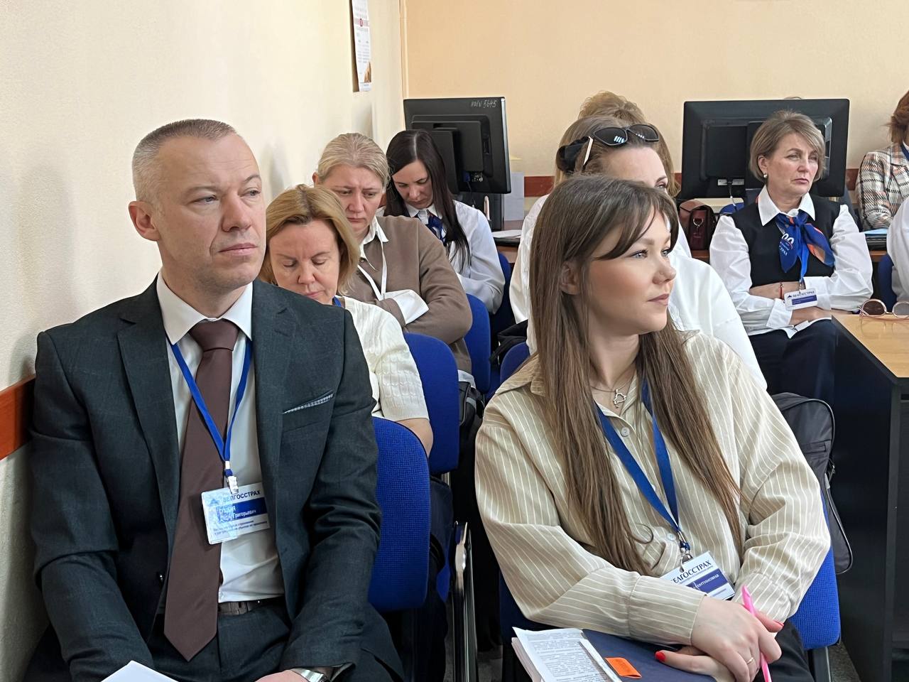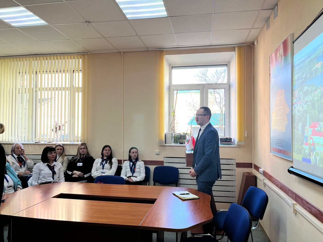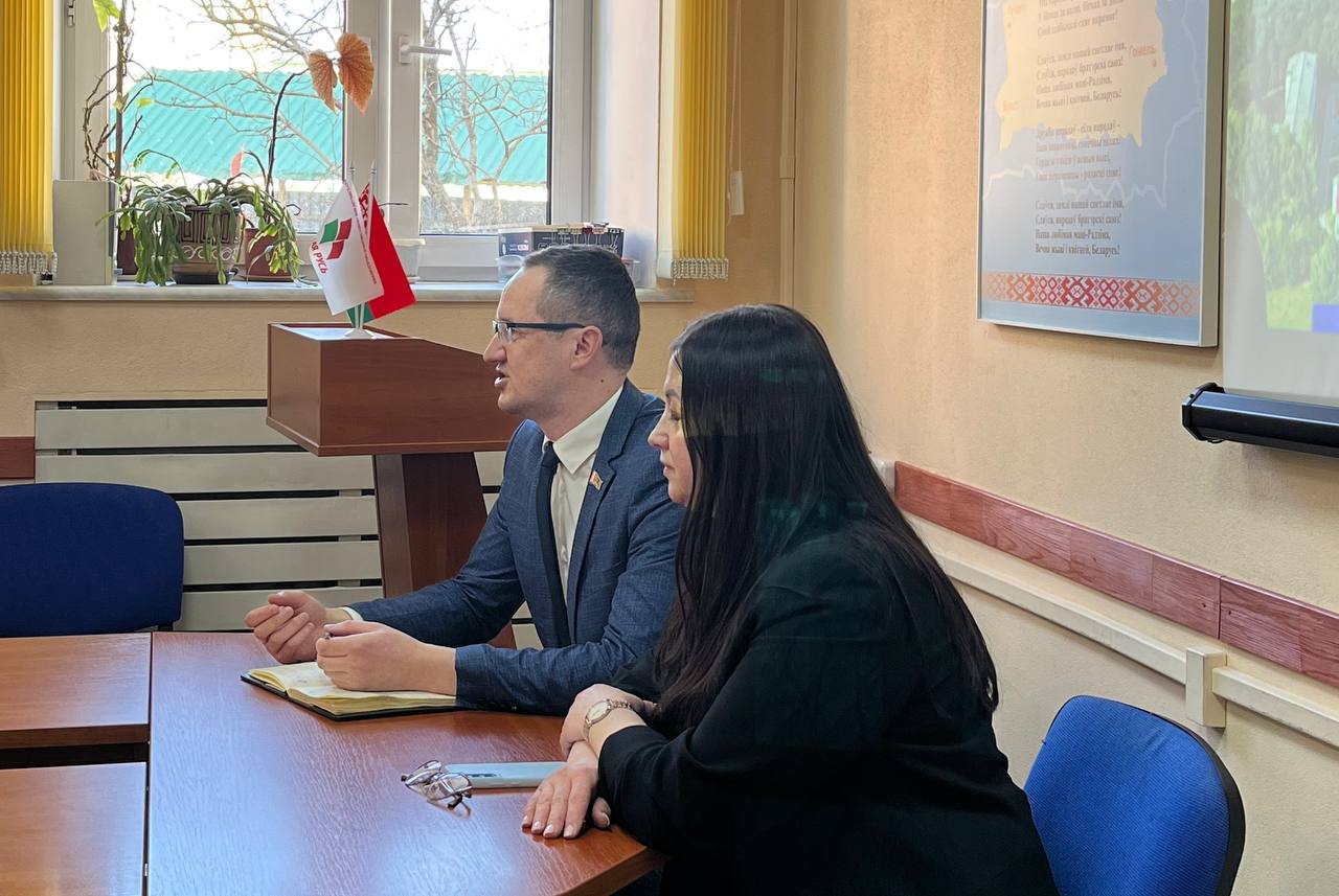В рамках Единого дня информирования коллектив солигорского «Белгосстраха» встретился с начальником отдела идеологической работы и по делам молодежи Солигорского райисполкома Артемом Жовнериком.