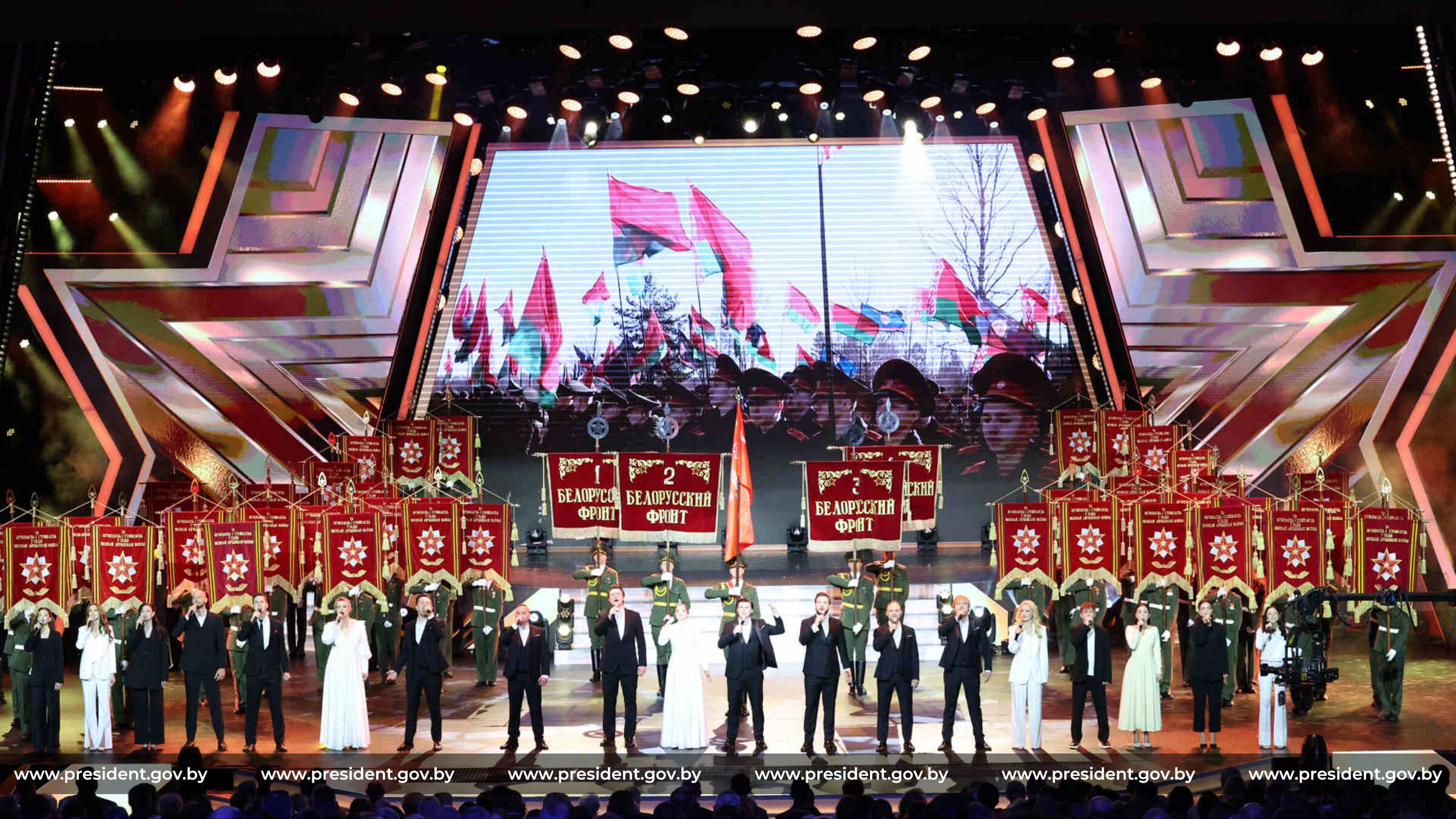 «Что называется, судите сами. Прошло 80 лет с того великого дня, когда наши советские войска сломали хребет самому опасному и страшному врагу прошлого столетия. 80 лет. А мы? Создаем мемориалы, комплексы: Хатынь, Ола, Красный Берег, Брестская крепость, Буйничское поле. Модернизируем уже в который раз, вкладывая колоссальные средства. Воздвигаем памятники, которые также строим, перестраиваем, приводим в порядок, ухаживаем за ними. Курган Славы, площадь Победы, памятник городу-герою Минску. По крупицам собираем факты побед и ужасов той войны. Идем к этим памятникам, мемориалам, ведем за руку за собой детей. Учим в школе, в вузах, глубоко вникая в ту войну, отыскивая тот нерв, благодаря которому мы победили», — отметил Александр Лукашенко.