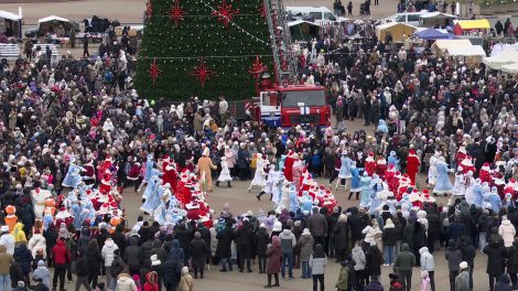 В праздничном шествии приняло участие более 150 сказочных героев. Дед Мороз — спасатель зажег главную елку Солигорска, а на площади прошли новогодние гуляния.