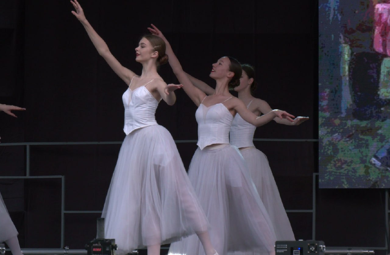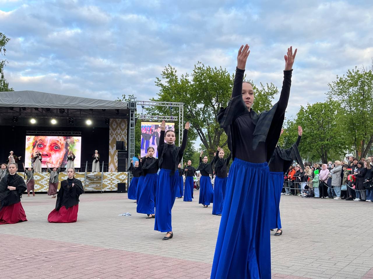 «Цветы Великой Победы». Хореографическое представление развернулось 9 мая на центральной площади.