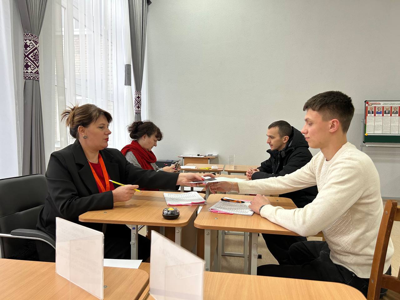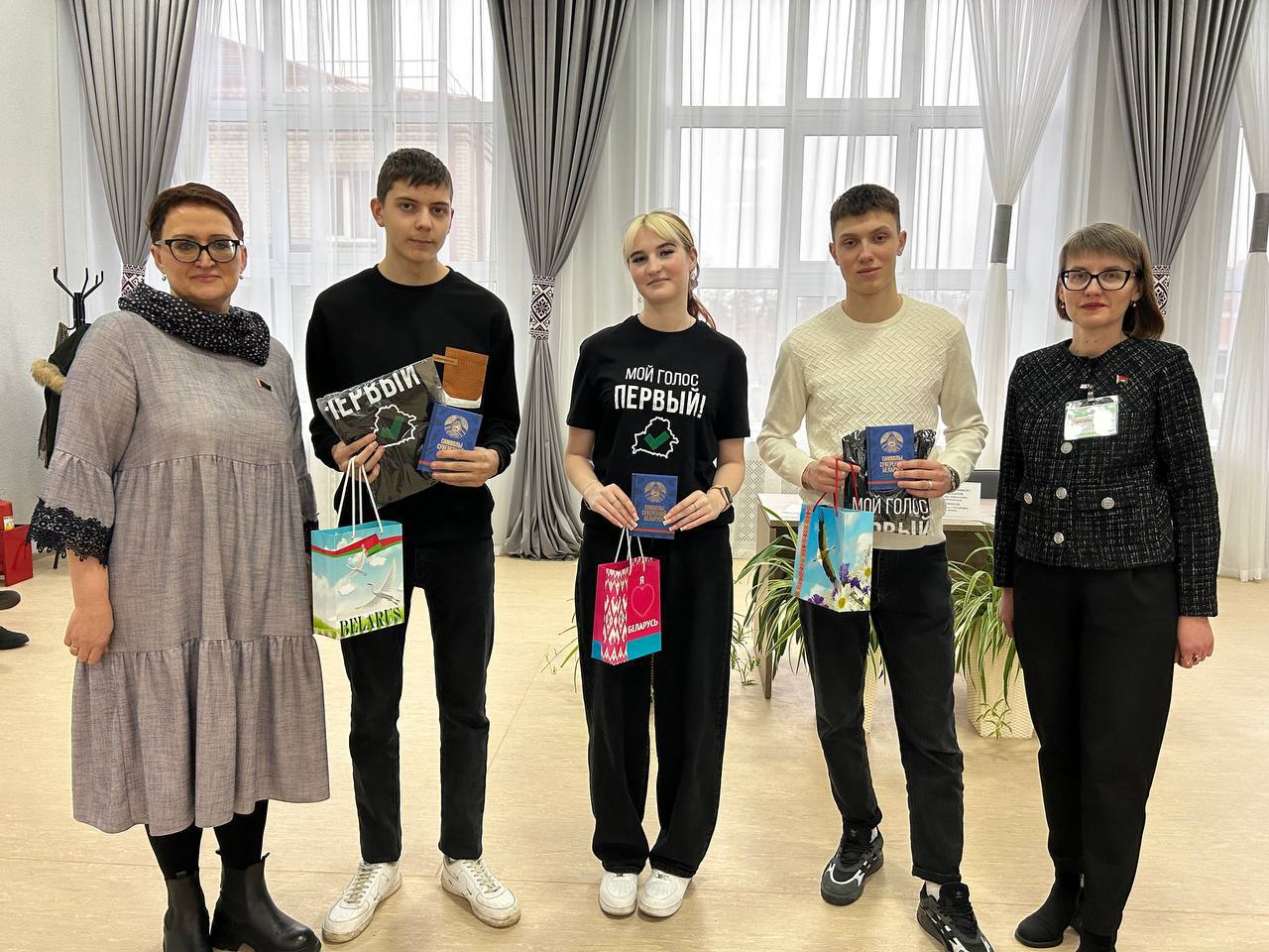 На участок для голосования №9 во второй день досрочного голосования, чтобы исполнить свой гражданский долг, активно идут юноши и девушки. Для впервые голосующих молодых избирателей — слова поздравления, и напутствия, а также памятные подарки от ЦИК и брендированные футболки БРСМ.