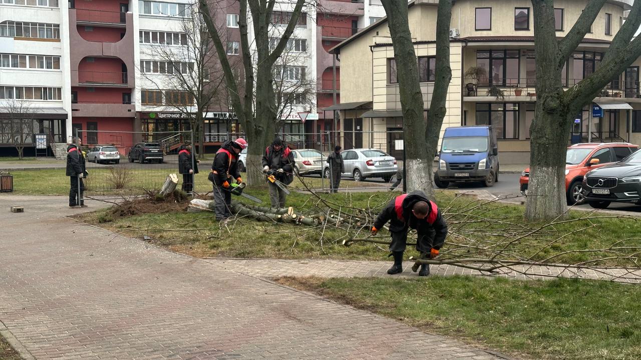 Изменения ждут и улицу Козлова – возле здания Солигорского райисполкома сейчас проводится обрезка деревьев и благоустройство территории.