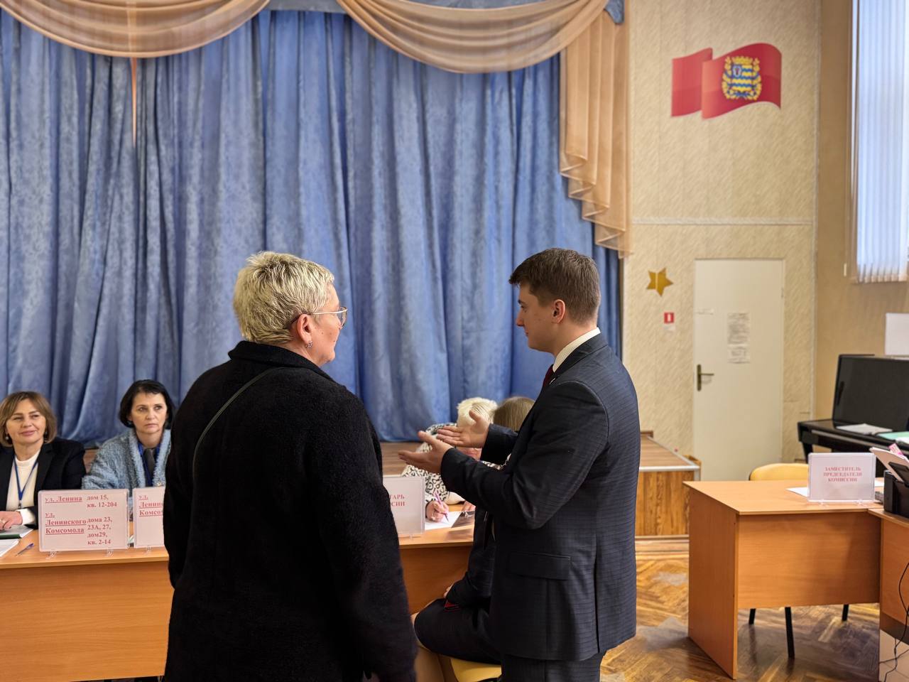 Международные наблюдатели от Содружества Независимых Государств Максим Воронин и Вероника Фатхутдинова осуществляют наблюдение за ходом выборов Президента Республики Беларусь в Солигорском районе.