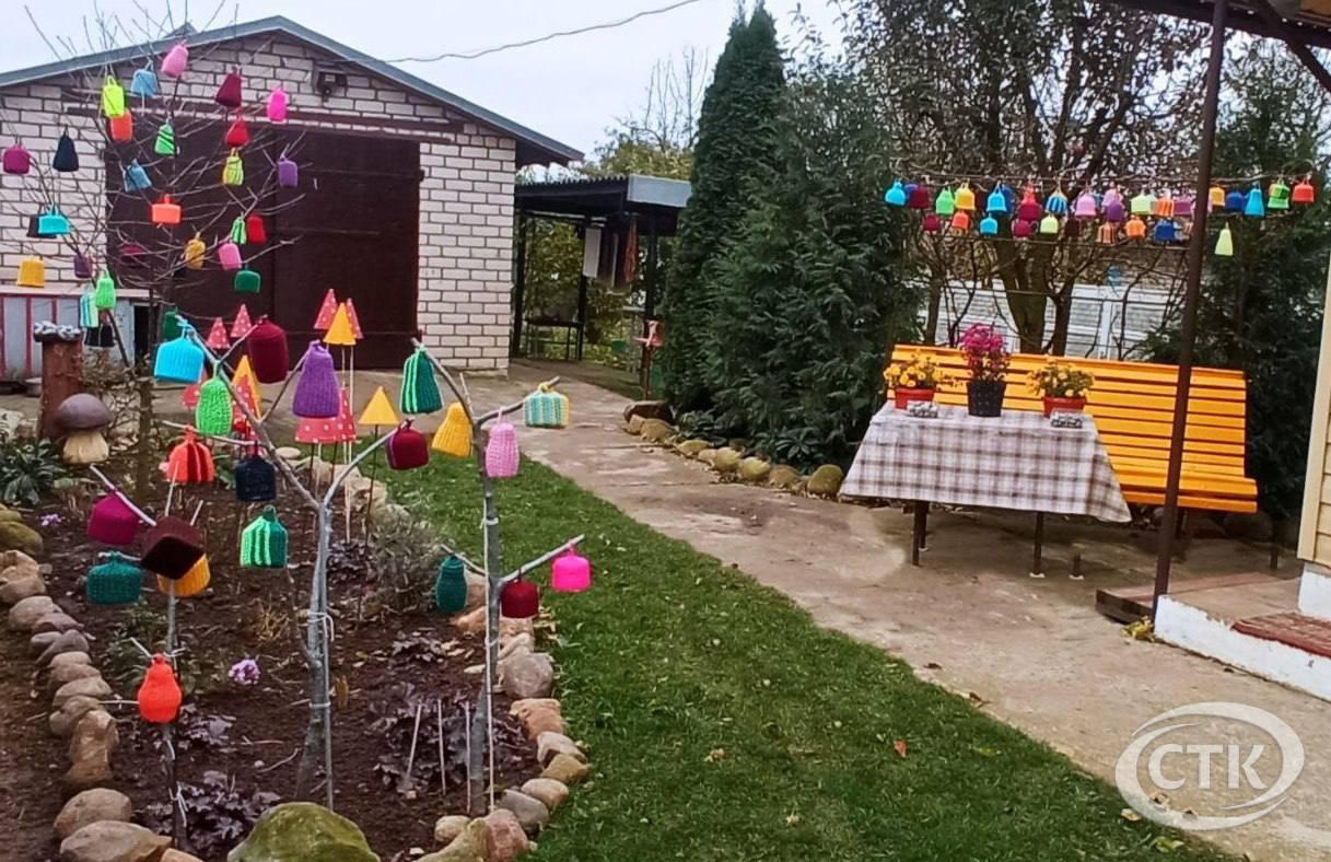 Бобко-Алешкевич, которая не согласилась с серостью поздней осени и творчески подошла к украшению двора своего дома: под крышей беседки появилось 24 ярких вязаных колокола, над украшением опустевшей клумбы перед беседкой Валентина Бобко — Алешкевич трудилась вместе со своим супругом Михаилом, и теперь она наполнена «рукотворными грибочками» с пёстрыми шляпками. Семейное творчество поддержал и внук Михаил, который привозил необходимые материалы, чтобы любимая бабушка продолжила украшать освободившиеся от листвы деревья и кустарники.