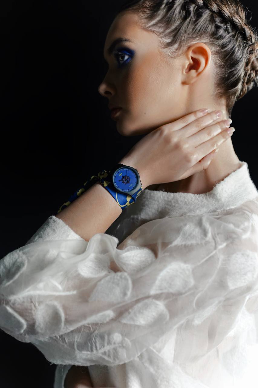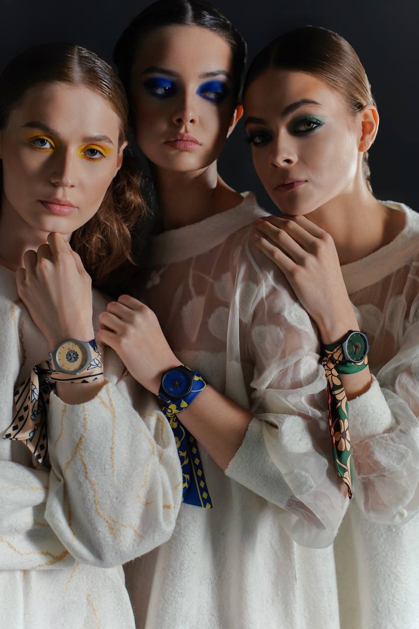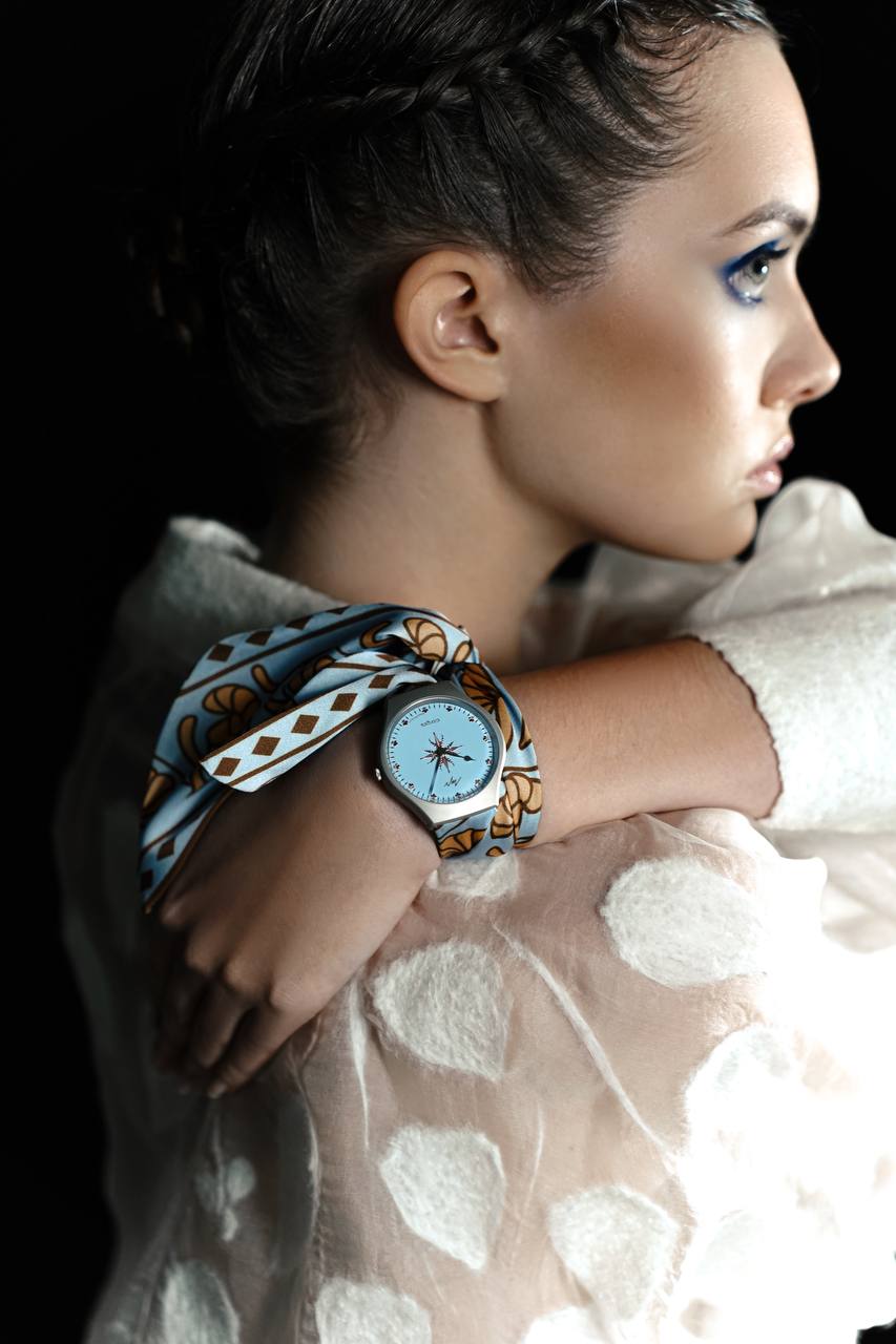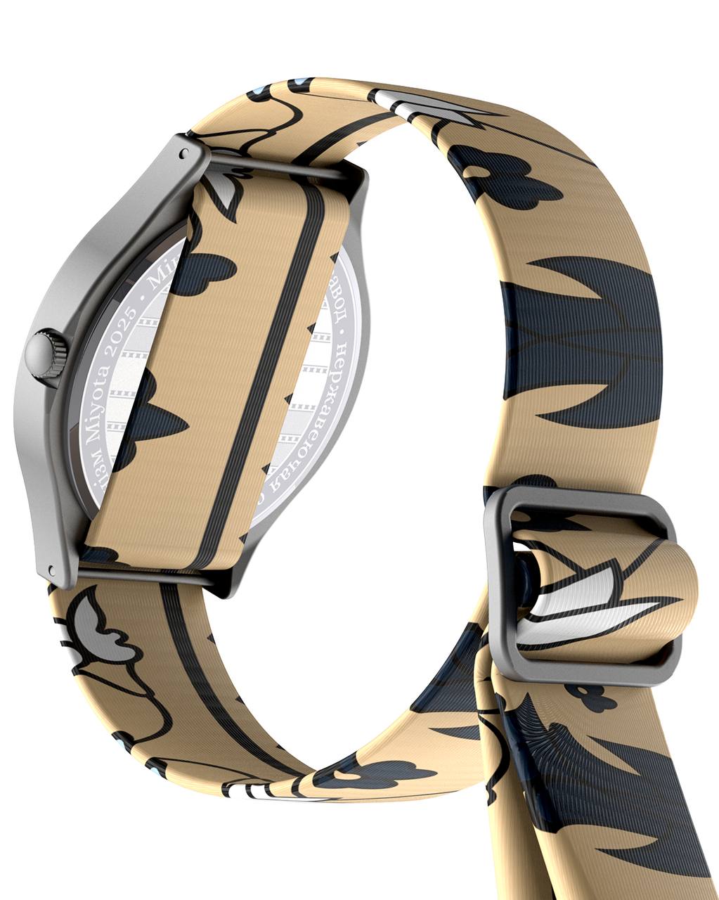 В новую линейку вошли пять оригинальных узоров, которыми украшены кожаные ремешки. Также к ним прилагаются сменные шелковые платки, выполненные в схожем стиле. Для удобства у модели есть съемная шпилька для замены ремешка на платок, чтобы менять их по настроению или случаю.